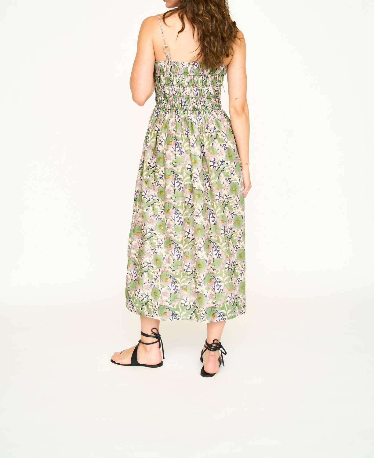Who doesn't love a good maxi dress? This one you'll be reaching for season after season. Indulge in the summer-ready elegance of the Puglia Maxi Dress by Mirth in a delightful lavender hue. This sleeveless dress features a squareneck and a smocked elastic bodice for a comfortable, flattering fit, with delicate spaghetti tie straps accentuated by beaded details. Its ankle-length A-line silhouette is crafted from a soft and light cotton/silk blend, fully lined, and made in India. Designed for vacations, this patterned maxi offers effortless pull-on closure and requires professional dry cleaning to maintain its luxurious appeal.