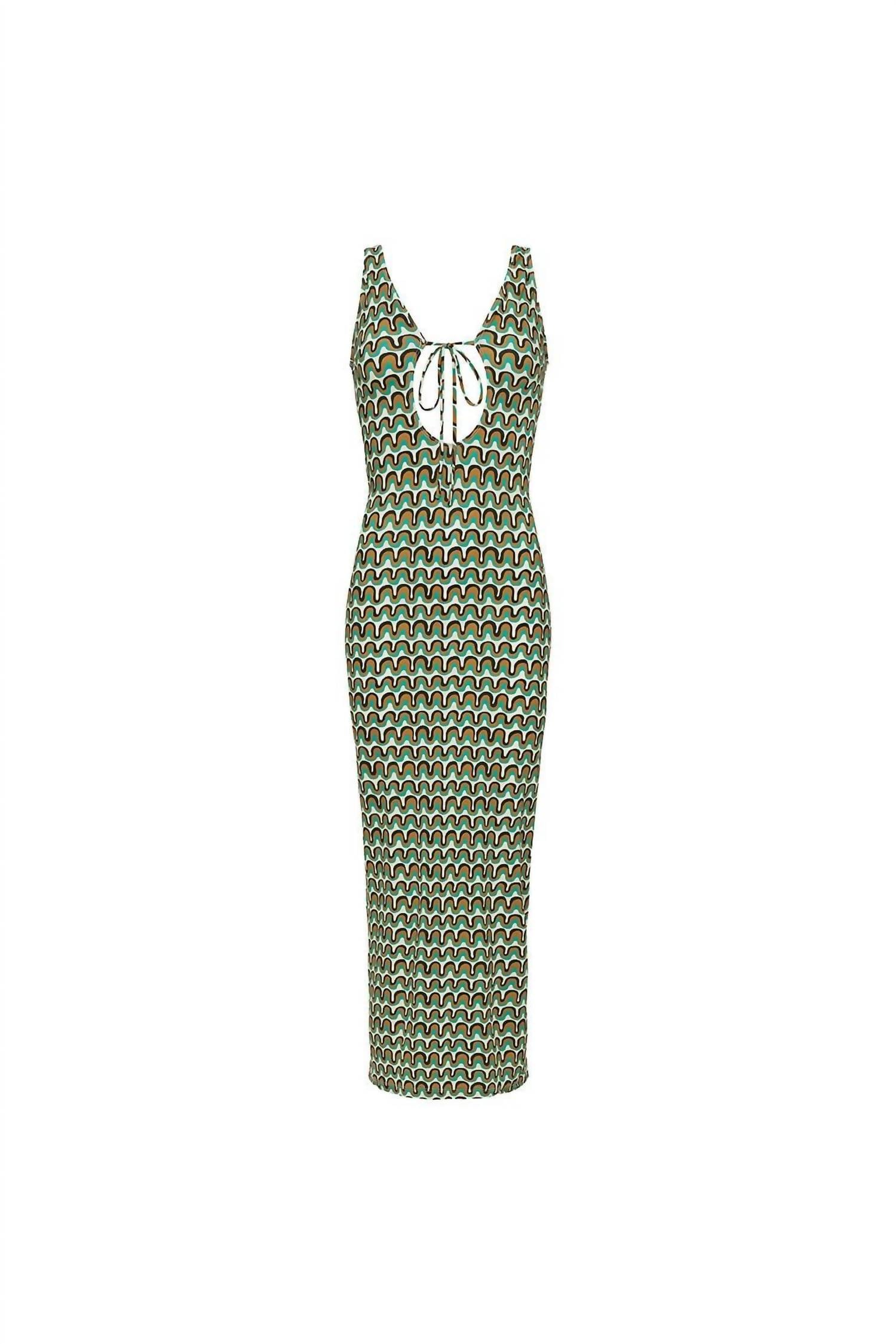Style this maxi with your favorite statement necklace and sandals for the perfect look. Introducing the Juliet Maxi Dress by Montce, a captivating choice for a summer beach day in vibrant Groovy print. This sleeveless, bodycon style dress features an ultra-low plunging neckline and open back, enhanced by adjustable front and back tie closures. With a maxi length silhouette, the dress is composed of a luxurious 75% Nylon, 25% Spandex blend, offering UPF 50+ UV protection and certified by OEKO-TEX. For easy care, the dress is machine washable, ensuring that you can maintain its stunning pattern without hassle.