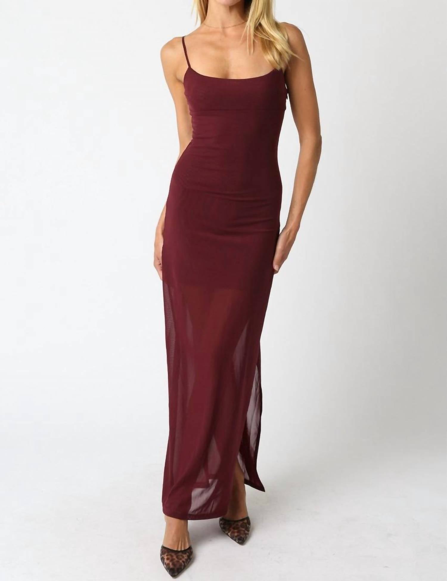 Who doesn't love a good maxi dress? This one you'll be reaching for season after season. Elevate your holiday party ensemble with the OLIVACEOUS Noelle Mesh Dress in striking burgundy. This women's maxi sheath dress features a solid monochrome design with spaghetti straps and a chic scoopneck. Made from sheer material, it offers a pull-on closure for easy wearability. To maintain its elegant look, dry cleaning is recommended.