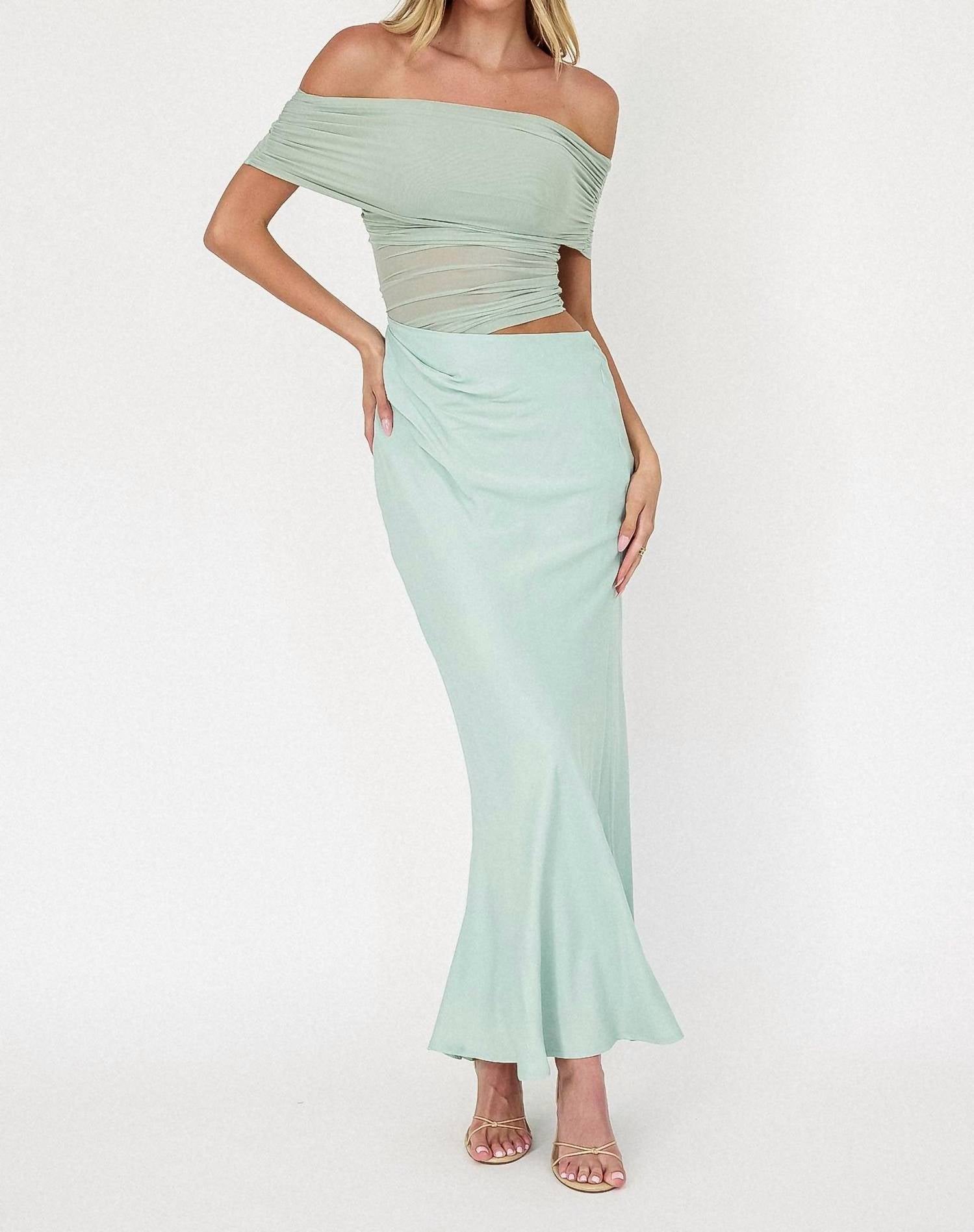 Style this maxi with your favorite statement necklace and sandals for the perfect look. Elevate your summer wardrobe with the One & Only Off The Shoulder Midi Dress in a captivating sage hue. This women’s mermaid silhouette is crafted from mesh fabric and features an alluring side cut-out for added allure. Designed with three-quarter sleeves and a monochrome trend, the dress ensures an impeccable fit with a convenient side zipper closure. For optimal care, please dry clean only, making it a perfect choice for special occasions like Valentine's Day.