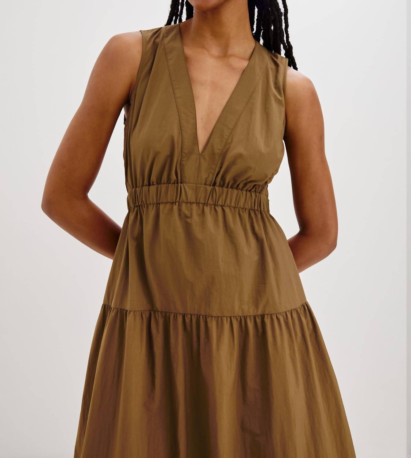 Style this maxi with your favorite statement necklace and sandals for the perfect look. Introducing the Genevieve Maxi Dress by Rails in elegant Sepia, perfect for your next holiday party. This sleeveless dress boasts an empire waist and V-neckline, crafted from 100% Nylon for a minimalist and flattering A-line fit. It features a stylish cut-out detail at the back and a pull-on closure for ease of wear. Measuring 52.25 inches in body length and imported, it is recommended to dry clean only to maintain its quality.