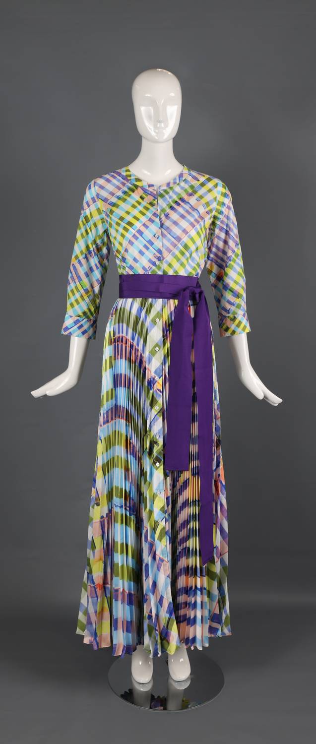 Style this maxi with your favorite statement necklace and sandals for the perfect look. Capture effortless elegance with the Striped Maxi Dress by SARA ROKA, featuring a playful pastel palette complemented by a vibrant purple sash belt. This women's patterned A-line dress is perfect for a dinner party or Mother's Day celebration with its summer-ready v-neck design. The garment includes three-quarter sleeves and a button closure.