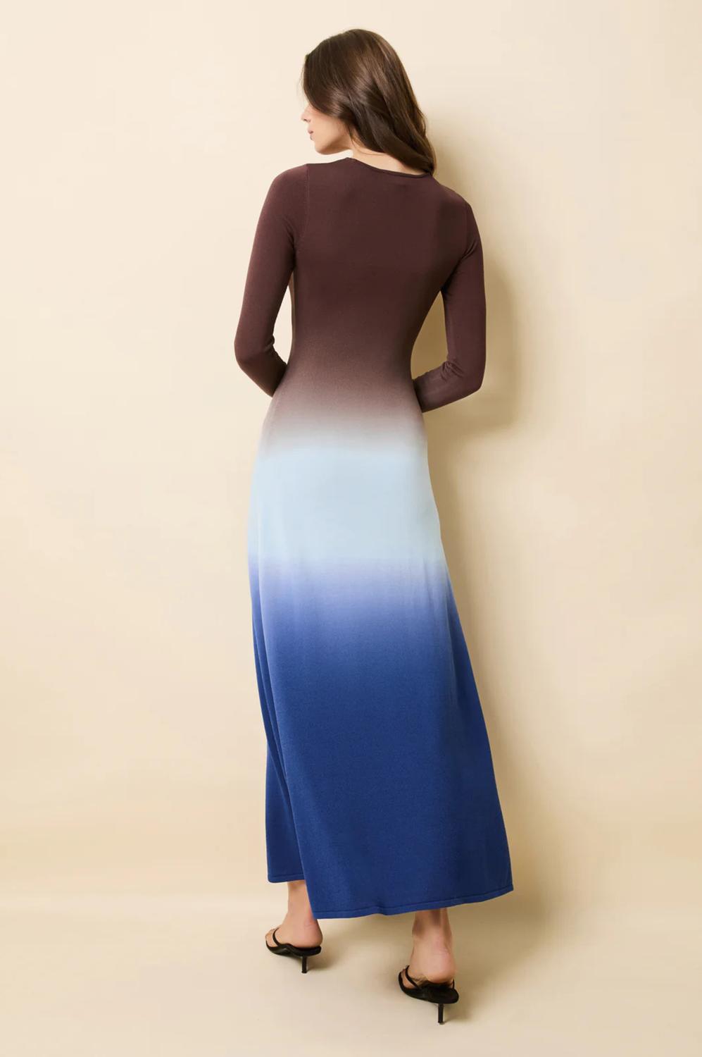 A maxi dress that is just as cute as it is comfortable. Introducing the Dora Maxi Dress by SOLID & STRIPED, an A-line silhouette crafted for the maximalist trend in a striking Twilight/Raisin Brown ombré. Featuring long sleeves and a luxurious Viscose blend (80% Viscose, 20% Nylon), this patterned piece offers modern sophistication. The pull-on closure ensures a sleek look, making it ideal for evening events. Care for this elegant garment with hand washing and laying flat to dry, perfect for transitioning seamlessly from day to night.