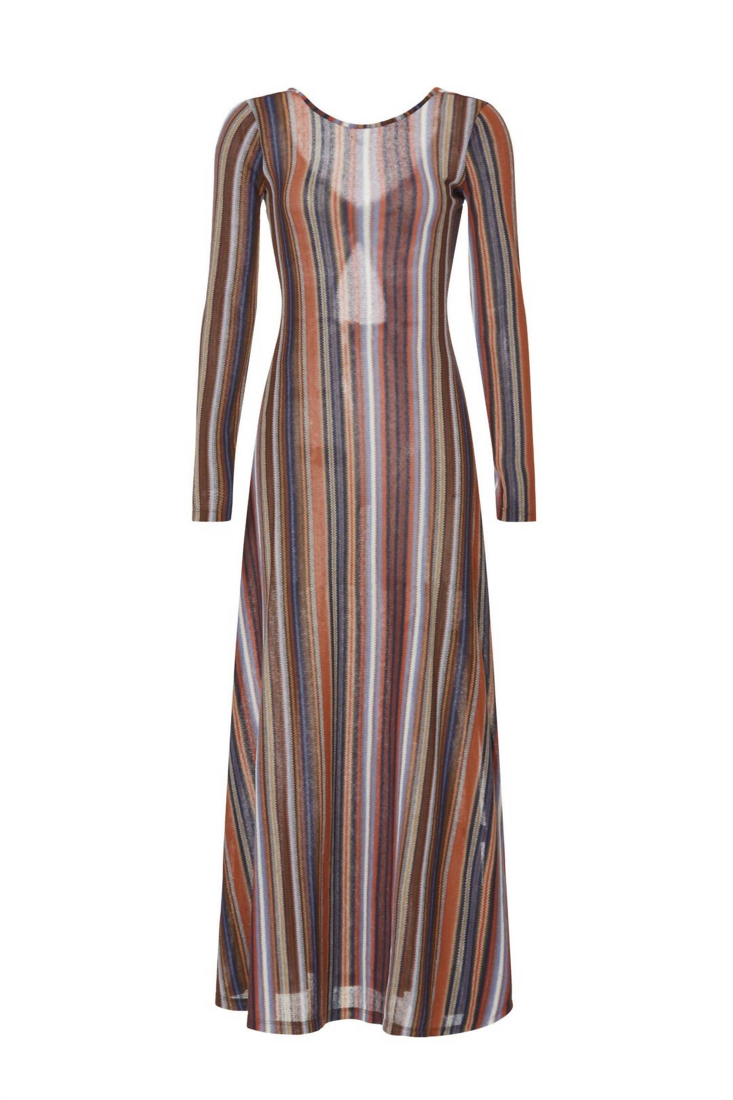Who doesn't love a good maxi dress? This one you'll be reaching for season after season. Introducing the Striped Reversible Dress by SOMETHING NAVY, the perfect addition to your holiday party wardrobe. This A-line maxi dress is crafted from a comfortable cotton blend and showcases a chic brown combo stripe pattern. The long sleeves and crewneck design make it ideal for spring occasions. Embrace versatile fashion with this elegant piece, tailored for women seeking style and sophistication.