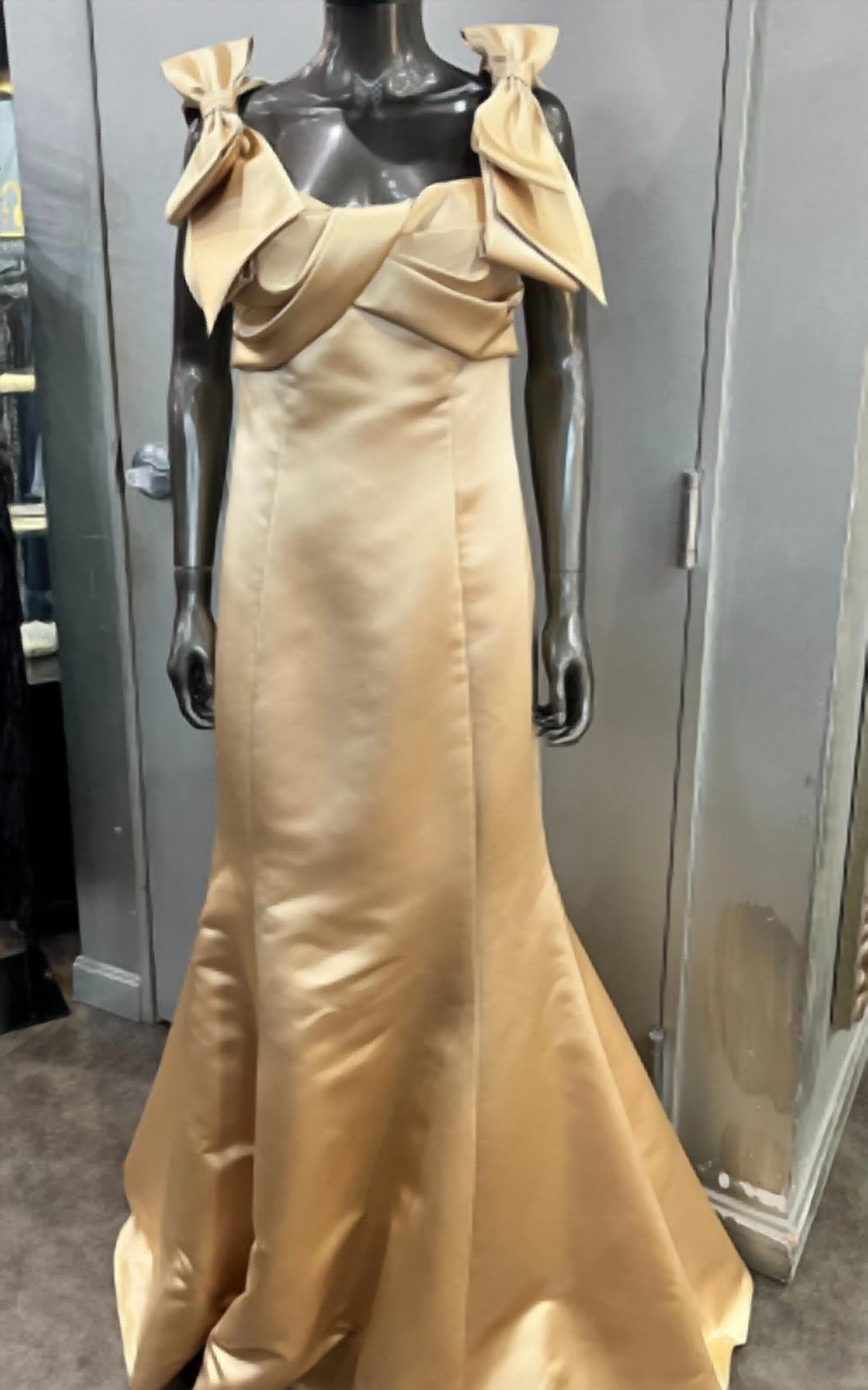 Who doesn't love a good maxi dress? This one you'll be reaching for season after season. Tarik Ediz's Gold gown has a sweetheart neckline and bow straps. back zipper closure.