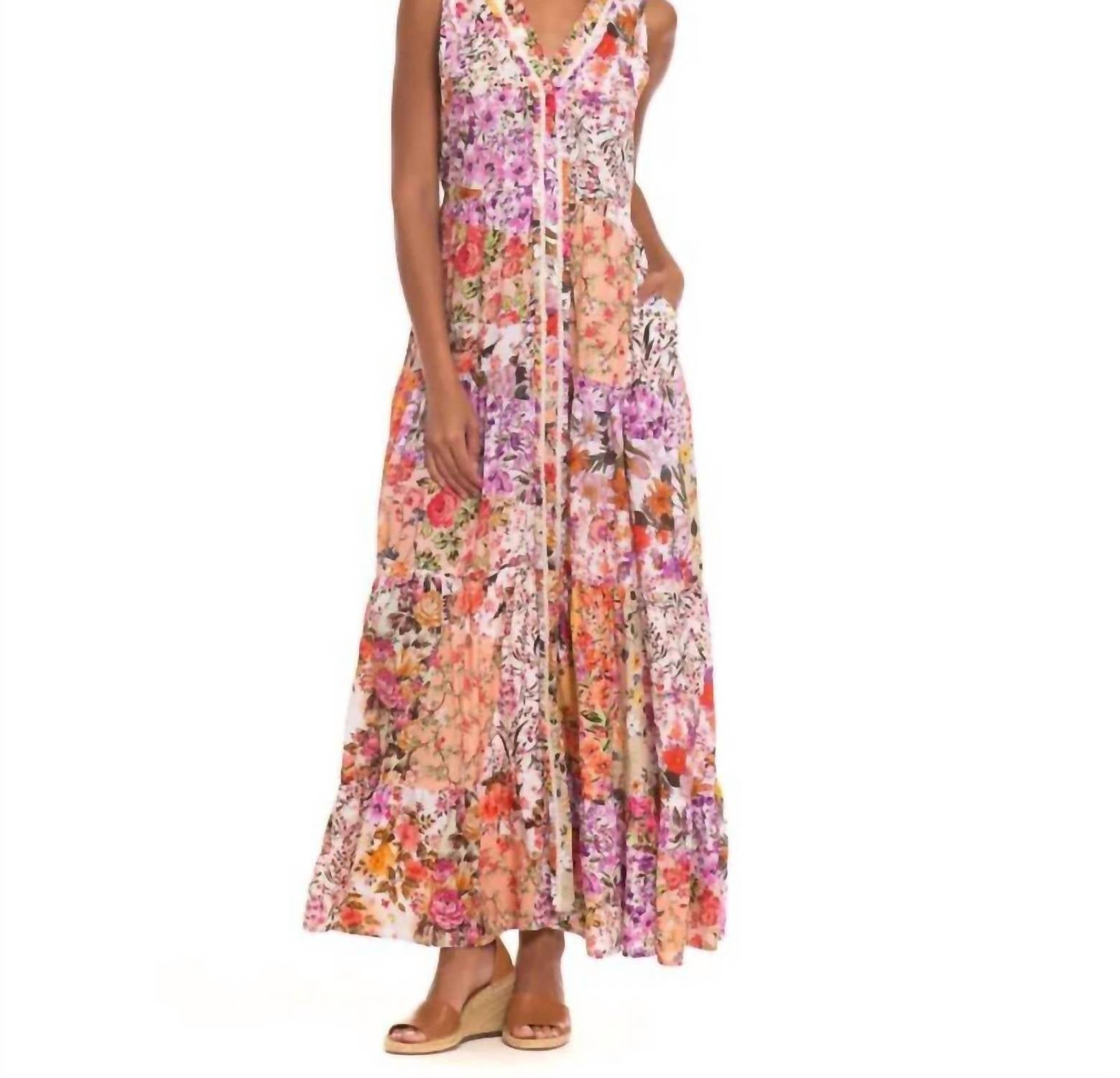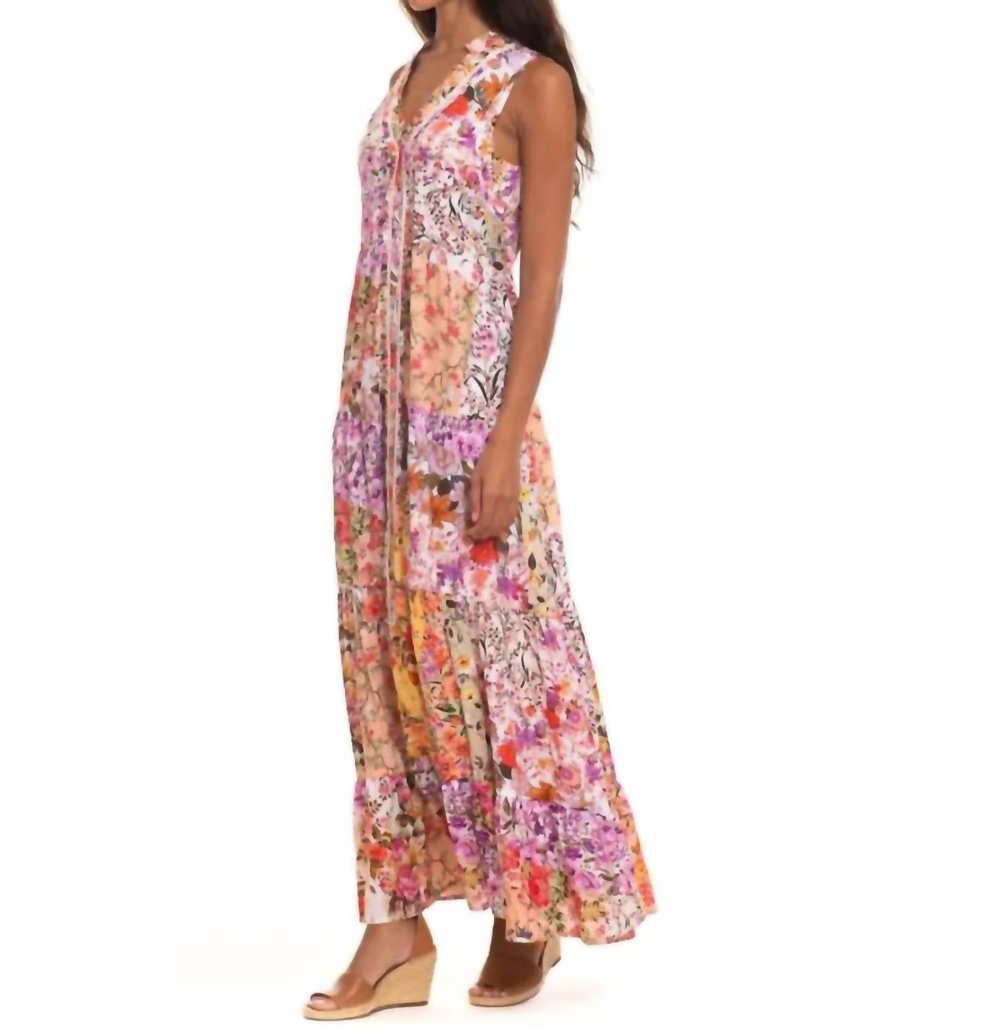 Who doesn't love a good maxi dress? This one you'll be reaching for season after season. Embrace boho chic style with the Alena Maxi Dress by Tolani, designed for your holiday party needs. This sleeveless maxi dress in a captivating peach floral pattern offers a luxurious feel with its modal material. Closure is effortless with a pull-on design. Care for this dress by hand washing and line drying to maintain its quality.