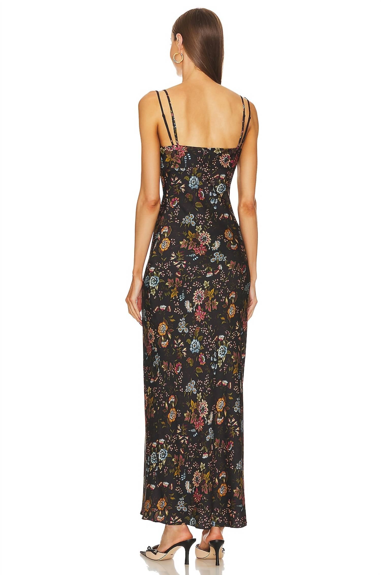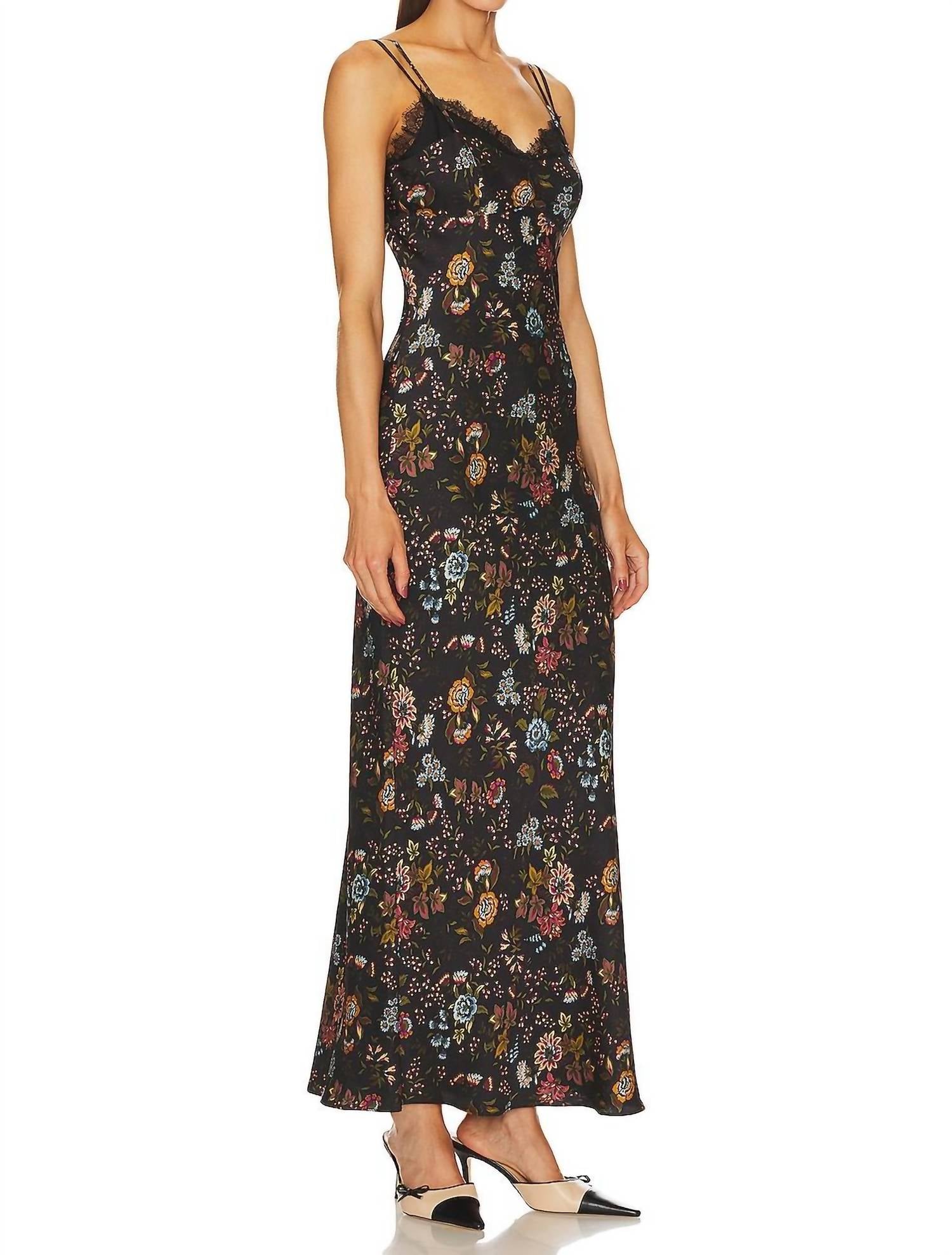 A maxi dress that is just as cute as it is comfortable. Showcase elegance with the Bixie Dress by Veronica Beard, perfect for wedding occasions. This black multi maxi features a boho chic floral pattern and a slip silhouette with delicate spaghetti straps and a V-neckline. Crafted from Polyester Blend with a convenient side zipper closure, this dress is a refined choice for any spring event. Care for this exquisite garment with dry cleaning to maintain its stunning appearance.