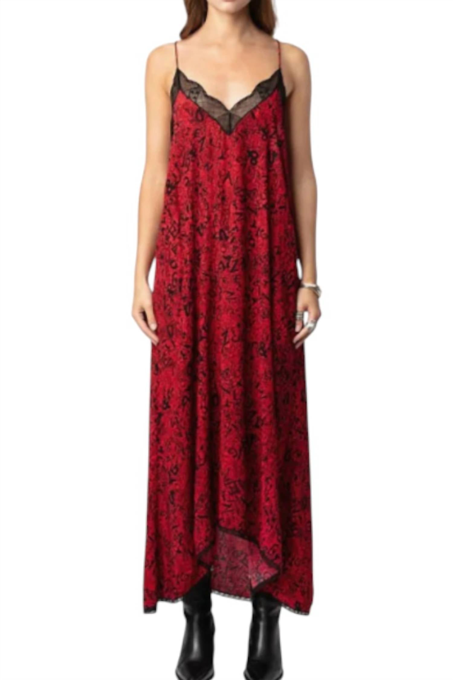 Style this maxi with your favorite statement necklace and sandals for the perfect look. Introducing the Risty Maxi Dress by Zadig & Voltaire, a striking choice in crimson red for your next holiday party. This women’s maxi dress is crafted from luxurious viscose and features a patterned design with a V-neckline and spaghetti straps, embodying a shirt dress silhouette in true maximalist style. Its pull-on closure makes it easy to slip into elegance for Valentine's Day festivities. Care instructions recommend machine washing and laying flat to dry for best maintenance.