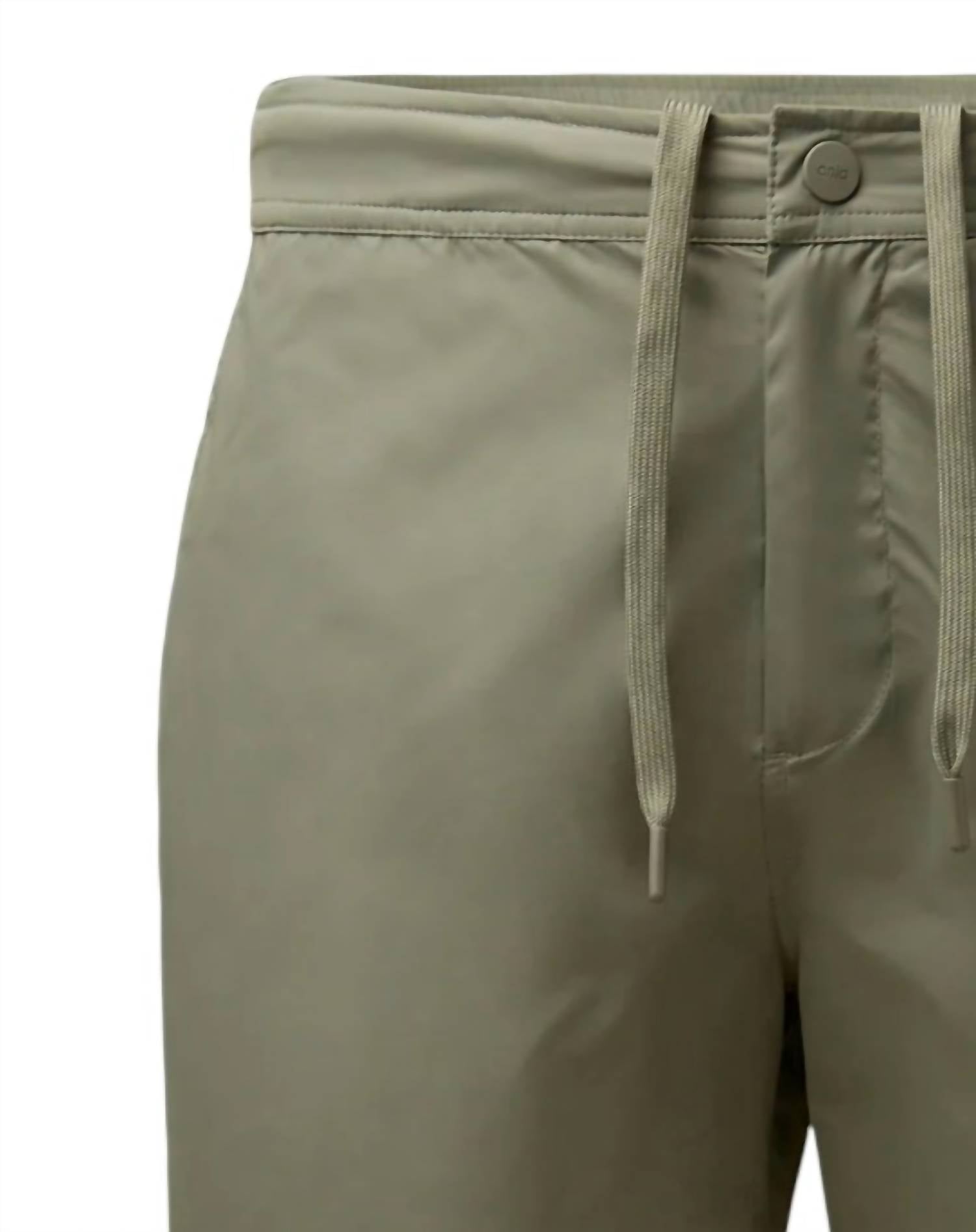 Introducing the Onia Men's Elastic Snap Front Swim Trunks, a minimalist summer essential in a solid sage hue. Crafted from a blend of 100% nylon with an interior brief lining of 90% nylon and 10% spandex, these swim trunks are made in China and offer lightweight comfort with ripstop fabric. Designed with a mid-rise waist, zip fly with snap button closure, and an adjustable drawstring tie for a secure fit, the trunks feature a back elastic waistband and convenient three-pocket styling. Measuring approximately 39 cm in length, these swim trunks require hand washing and line drying to maintain their pristine condition.