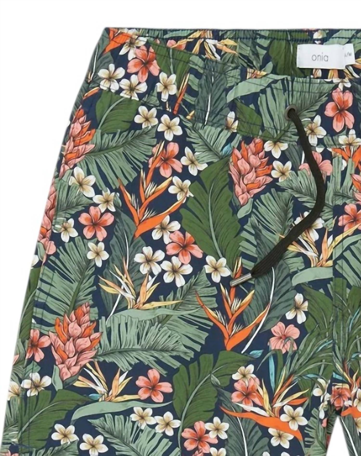 Dive into summer with the Men's Charles Swim Short by Onia, perfect for your beach day adventures. These Paradise Leaves trunks feature a floral pattern with a classic 5" inseam, offering a stylish nod to 90s fashion. With a comfortable mid-rise fit, these swim bottoms ensure both style and coverage. Made for easy care, simply hand wash and you're ready for the next sunny day.