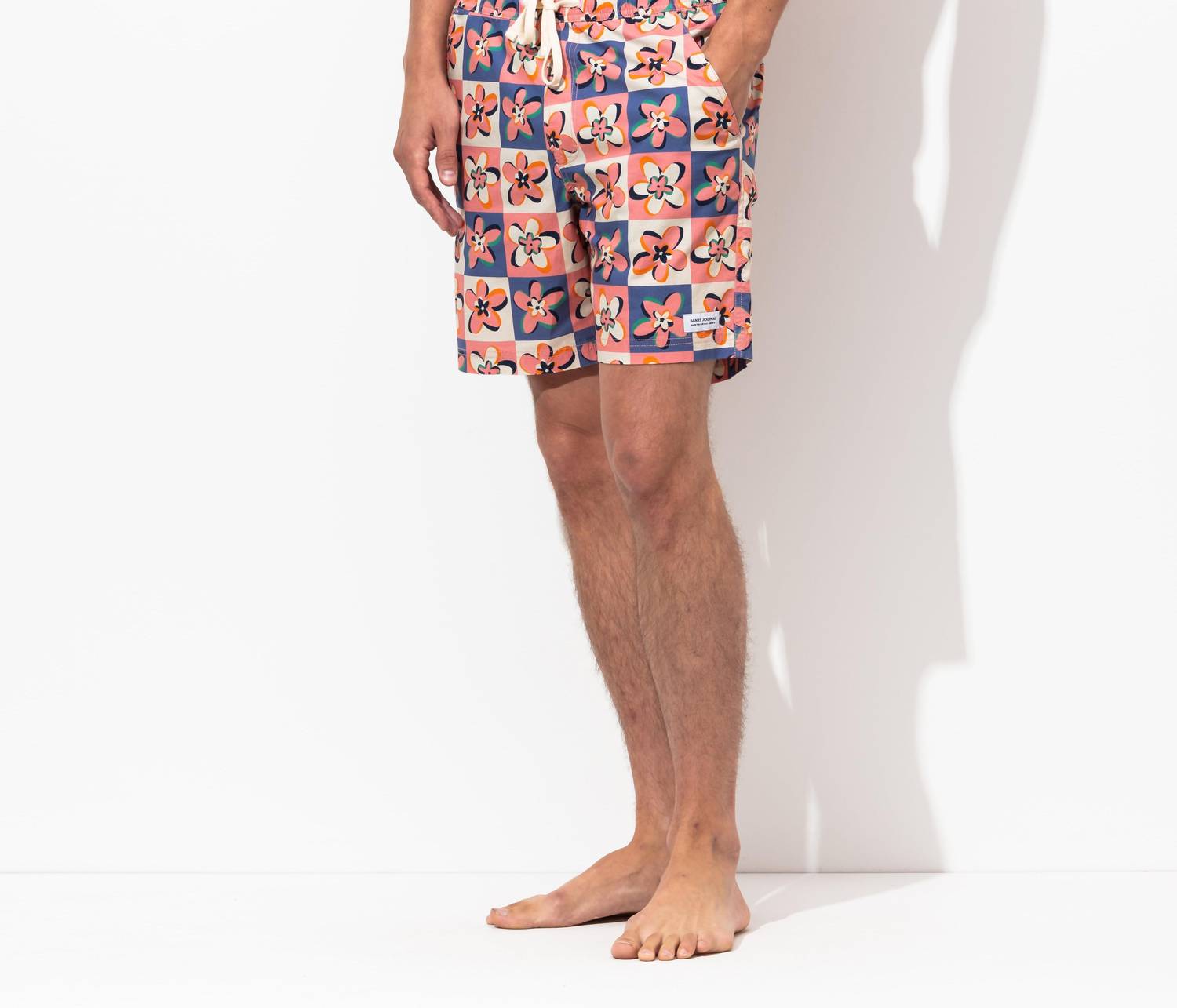 Discover the Candy Elastic Boardshort by Banks Journal, your go-to for a stylish summer beach day. With a full coverage design and retro floral pattern, it features a 17-inch outseam and mesh pockets, offering both functionality and flair. The elastic waistband, cotton drawcord, and back patch pocket add to its comfort and practicality. Made with sustainability in mind, it includes recycled polyester woven labels and FSC® approved paper swing tags. Care: Hand wash.