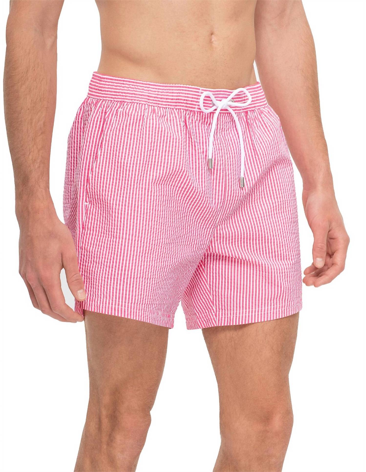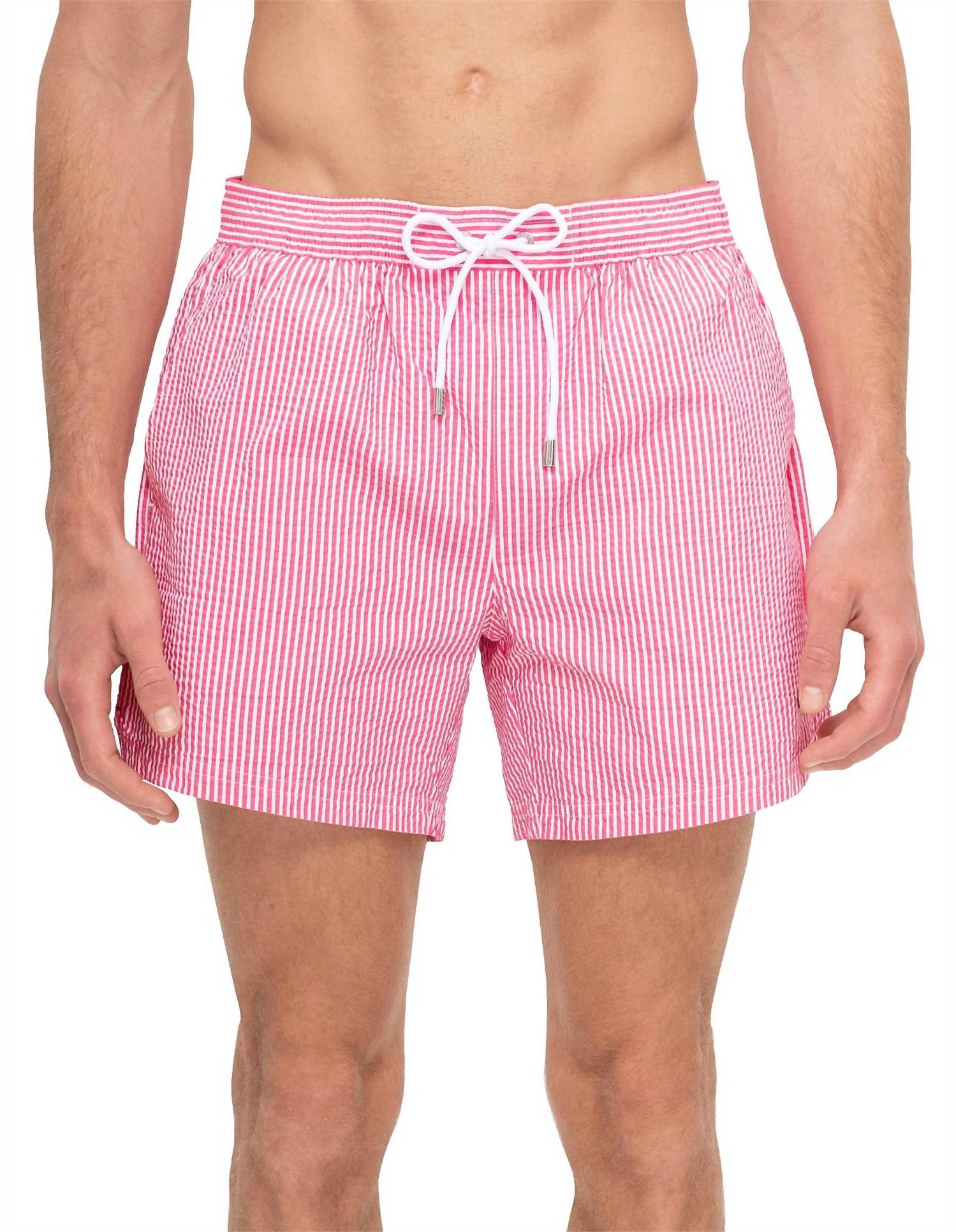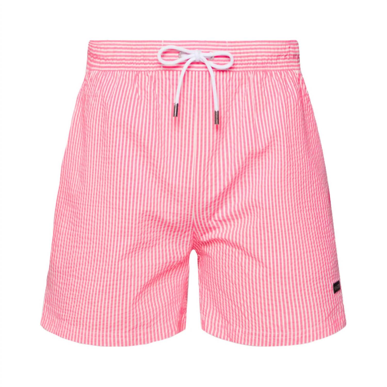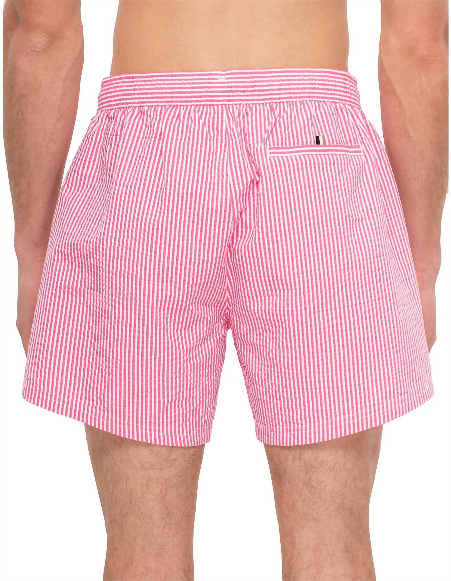 Dive into summer with the Velvetfish Swim Trunks by Hugo Boss, tailored for women who appreciate fashion-forward beachwear. Crafted from 100% polyester, these pink striped swim trunks offer a preppy aesthetic with practical side pockets and a convenient drawstring waist. With a pull-on closure for ease and imported quality, they combine style with function. For best care, machine wash them and lay flat to dry, keeping them in top condition for every beach day adventure.