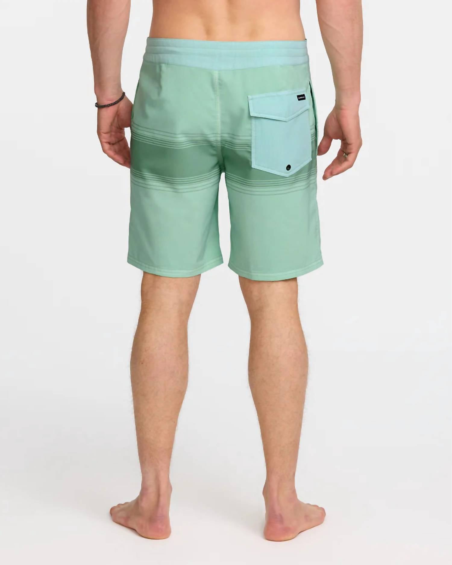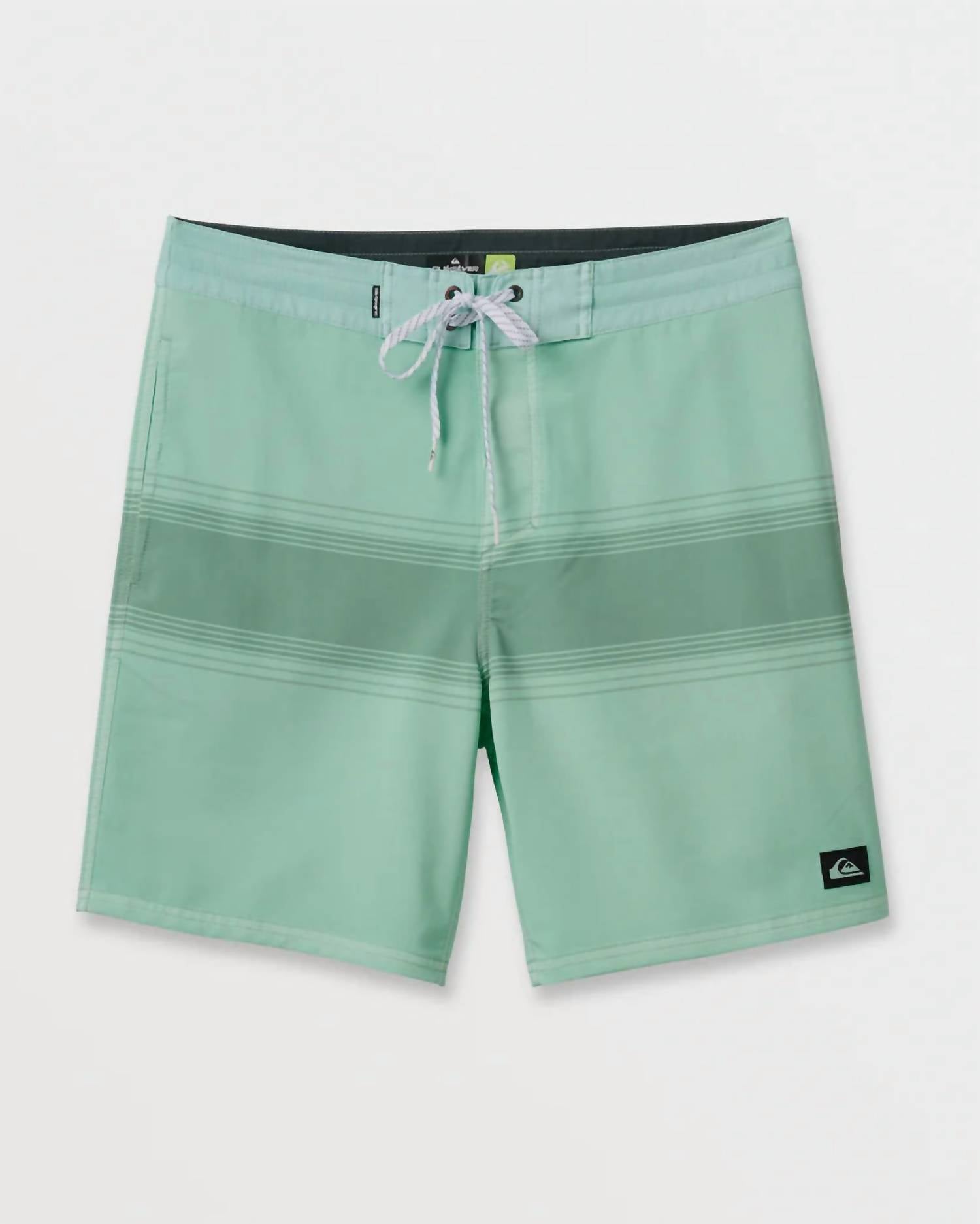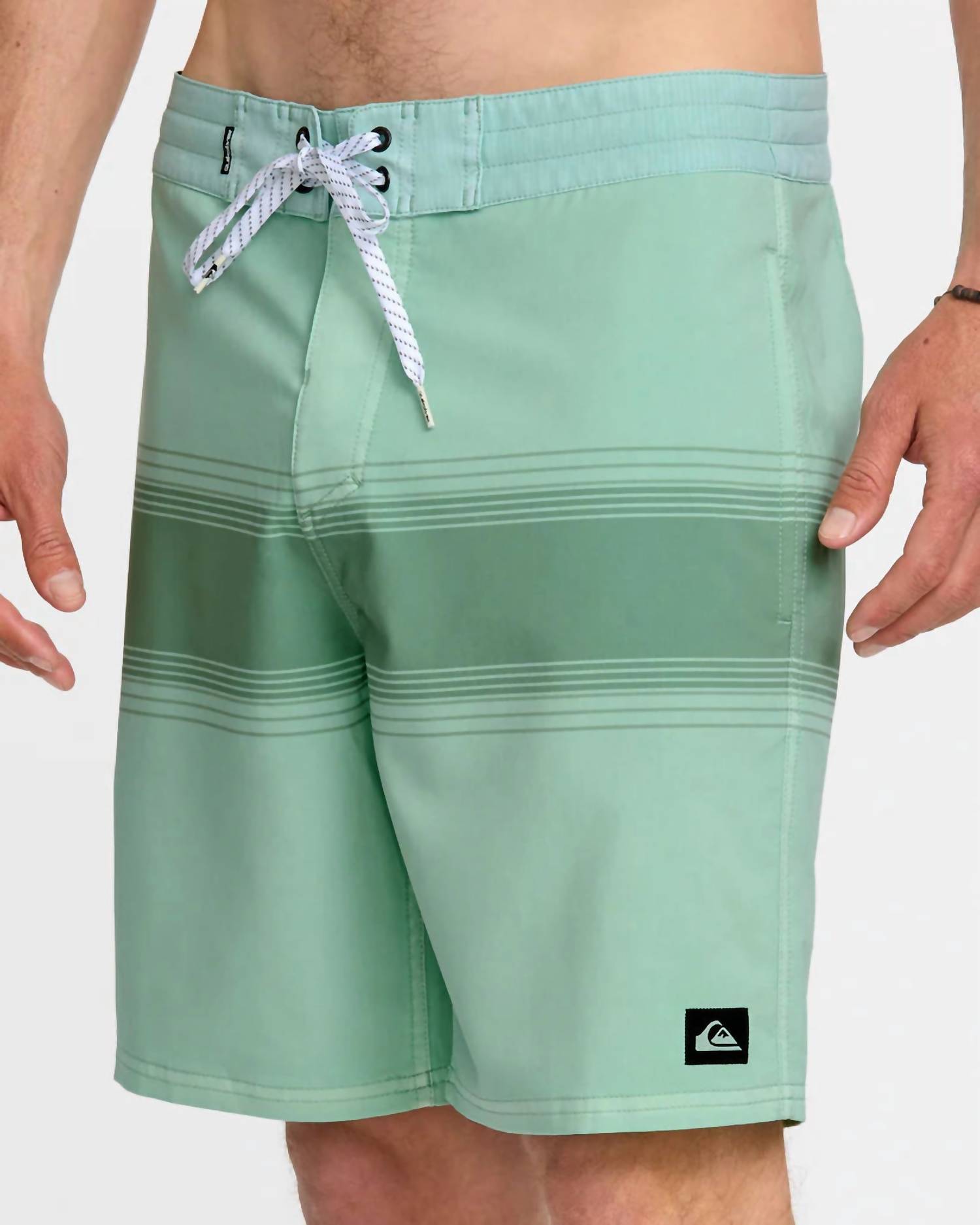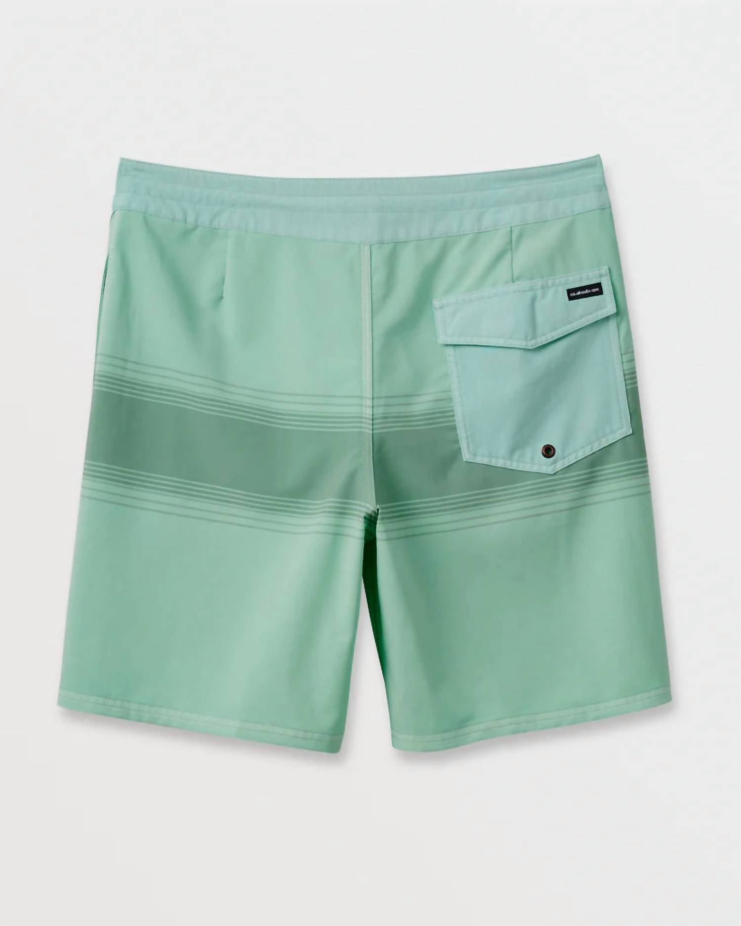 Experience the ultimate blend of performance and style with the Men's Surfsilk Street Trunks by Quiksilver in a striking jade hue. These swim trunks feature an 18" outseam straight leg silhouette, crafted from a partially recycled fabric with 88% recycled polyester and 12% elastane to provide a lightweight 4-way stretch for unmatched comfort. Engineered for rapid drying, they are perfect for both the surf and casual streetwear. Care instructions: Hand wash and line dry for best results.