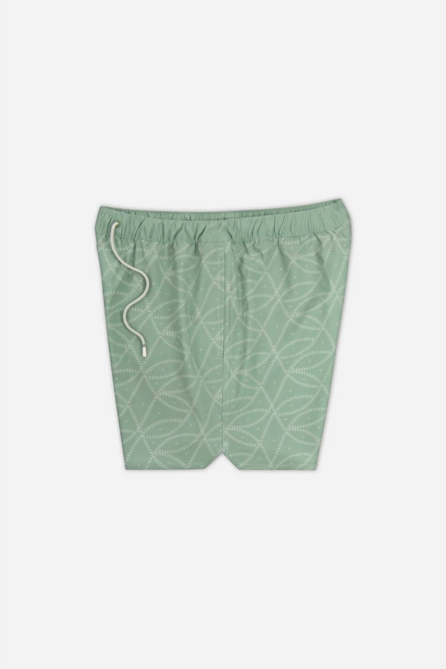 Dive into summer with the Men's Bayside 2 Poolshorts by Jetty, a stylish choice for any beach day in sage green. These minimalist board shorts, designed for full coverage, feature an elastic waistband and silicone dipped round drawcords for a secure fit. With a 6" inseam and 16" outseam, they include convenient side slit hand pockets for added functionality. Composition: 92% Polyester, 8% Spandex.