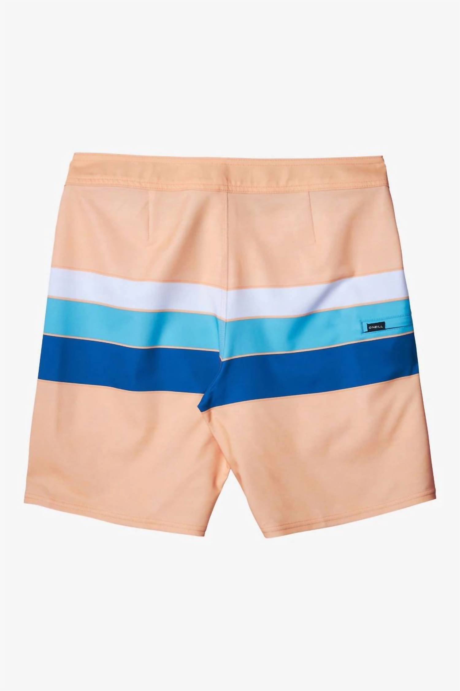 Elevate your beach day with the Men's Hyperfreak Heist Line Boardies by O'NEILL, featuring a striking stripe pattern in Cantalope color. Designed for streetwear enthusiasts, these summer board shorts offer a below-the-knee fit with a 21" outseam, crafted from Hyperfreak stretch material for comfort. Made with 89% polyester and 11% elastane, they incorporate anti-rash hyperthread technology for a carefree experience. Perfect for your next swim outing, these board shorts provide full coverage and effortlessly blend style and functionality.