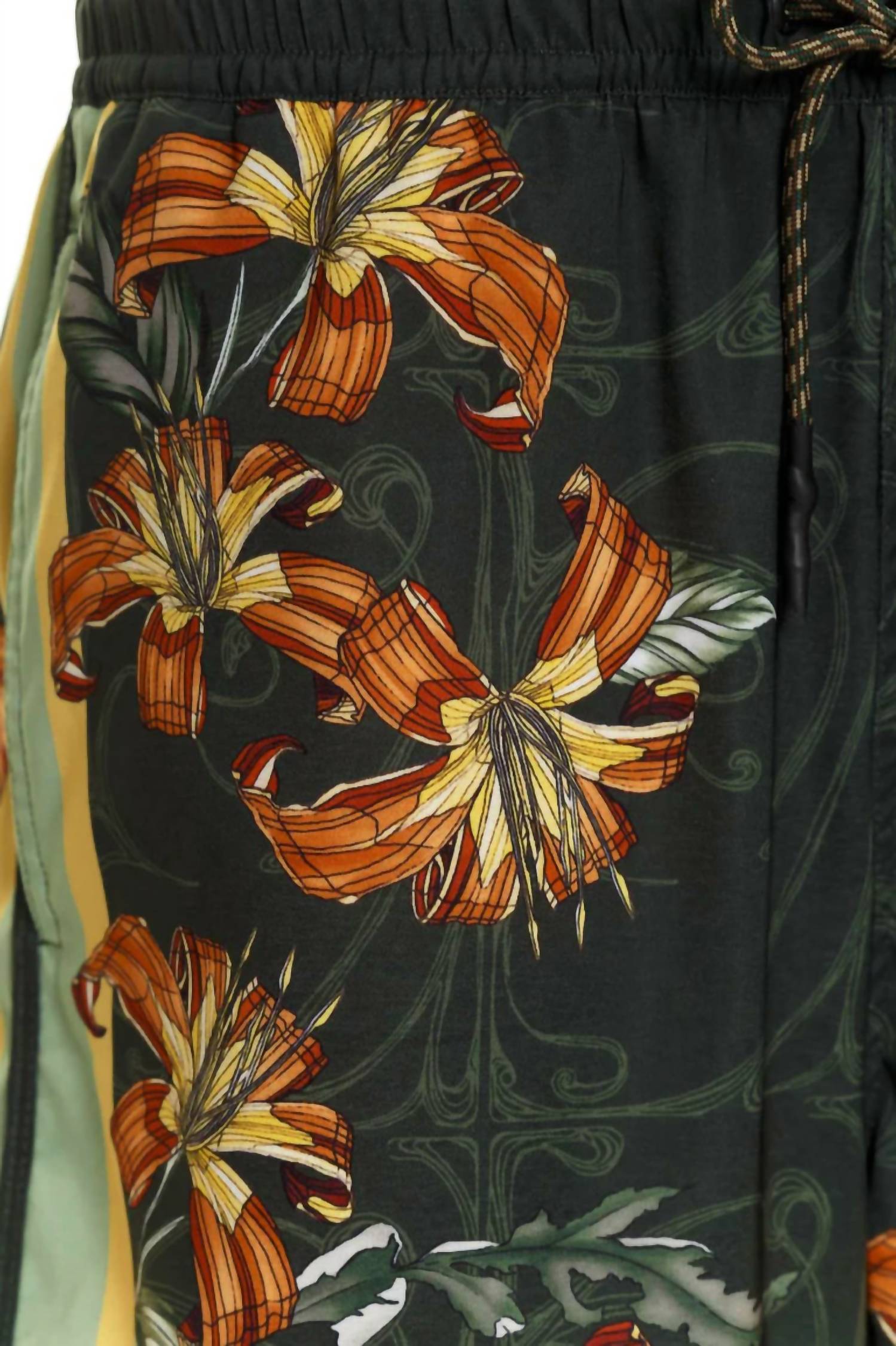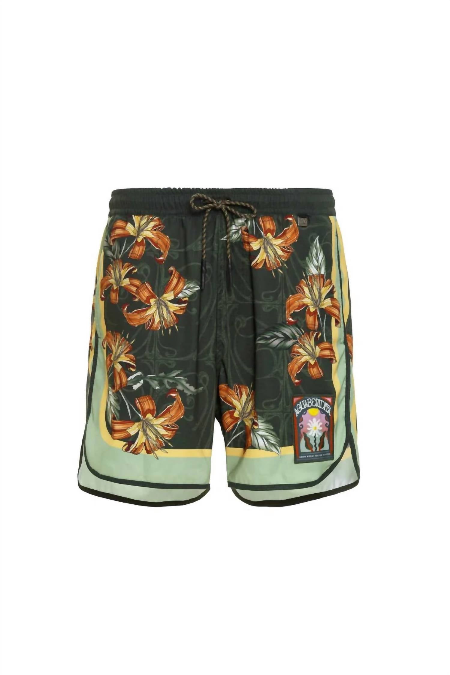 Step into summer with the AGUA BENDITA Men's Liam Vitreo Trunk, featuring a vibrant beachy floral design perfect for any sunny occasion. Designed with an elastic waistband for comfort and practicality, these 15-inch/39cm length trunks come with side and back patch pockets and a contrasting waistband. Crafted from a durable fabric blend of 96% Polyester and 4% Elastane, they offer reliable UPF 50+ protection. Colors include Green, Orange, Yellow, Black, Purple, and White. Care: Hand wash and hang dry. Model is wearing a size 34.