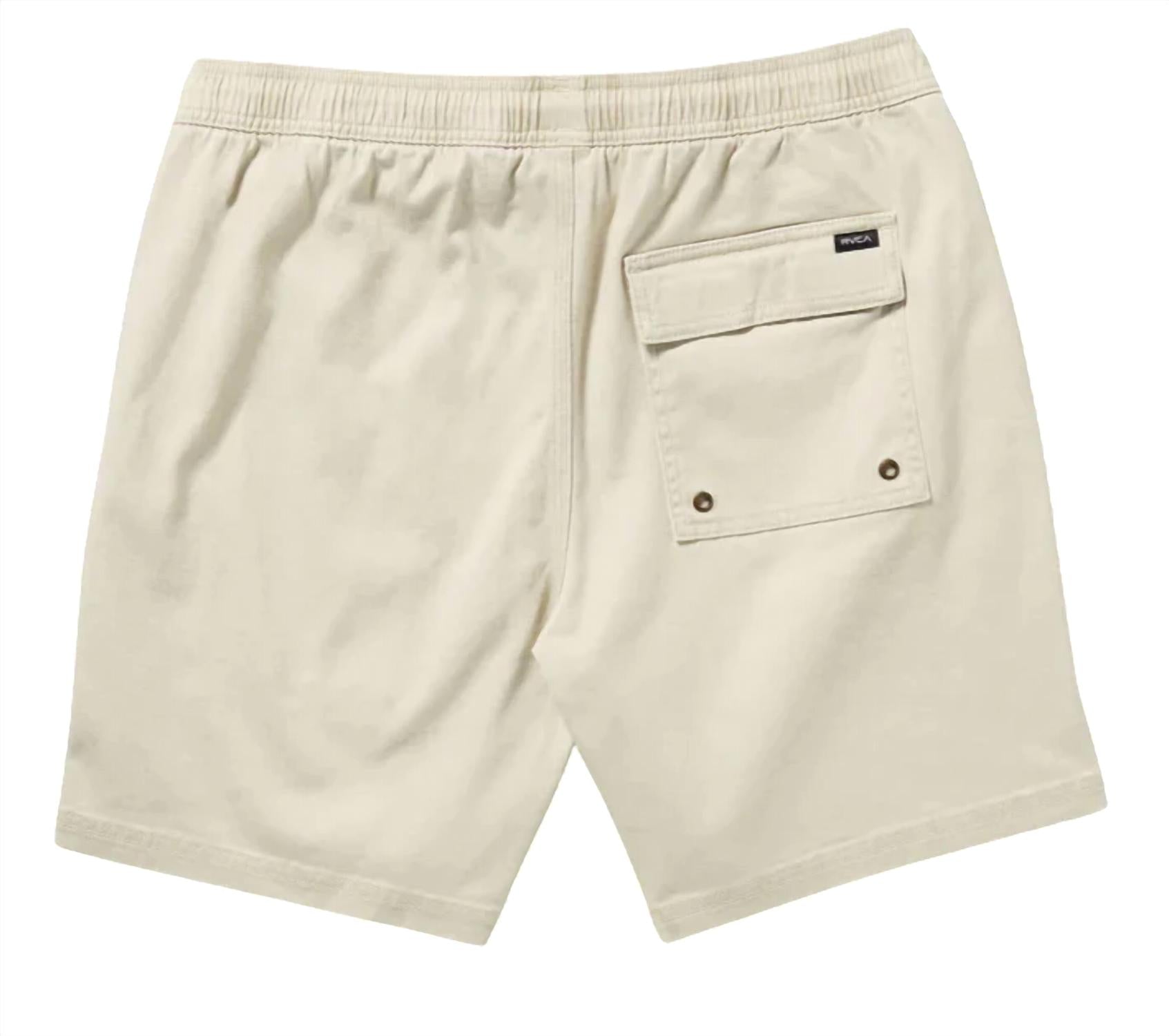 Introducing the Men's Escape Elastic Short by RVCA, a minimalist swim essential in a solid beige hue for your summer adventures. Crafted for vacation-ready style, these board shorts offer full coverage and feature a convenient pull-on closure with pockets for practicality. Made without lining, they deliver comfort and functionality for effortless transitions from beach to boardwalk. Ideal for those seeking an easy, pull-on short that complements any laid-back look.
