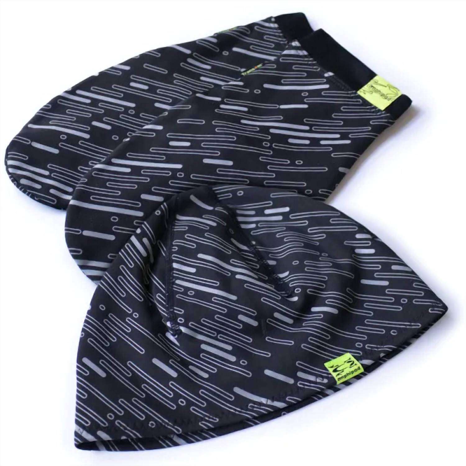 Elevate your run with the Men's Reflective Thermal Glove & Beanie Set by Amphipod, designed for both practicality and visibility. This innovative set includes a beanie made with a stretch outer material and a soft low-pile fleece inner to provide warmth during cool fall mornings and chilly evening runs. The gloves feature four levels of warmth and versatility, universal design for both hands, and offer optimal access for touch screens and more. Enhance your safety with brilliant reflective print on both the beanie and gloves, ideal for boosting visibility in low-light conditions. Color: Black.