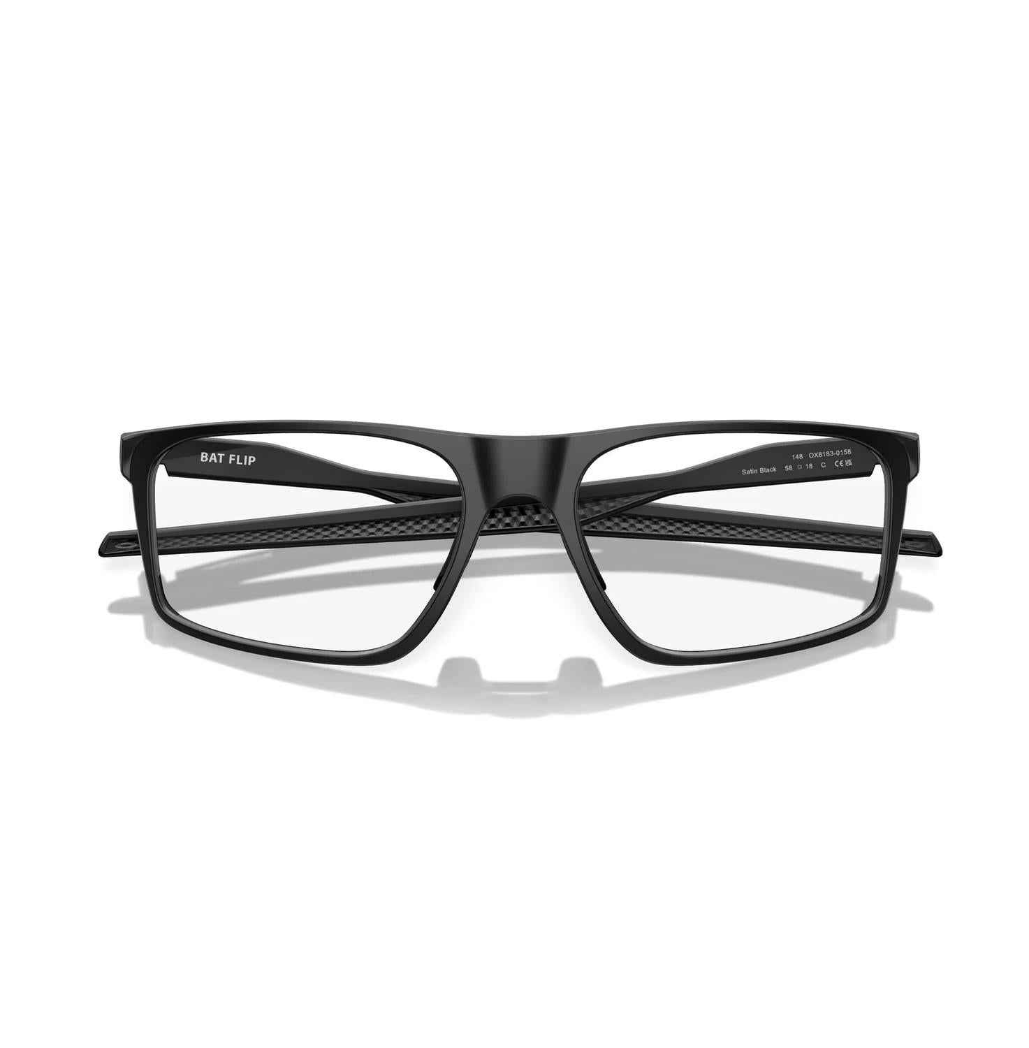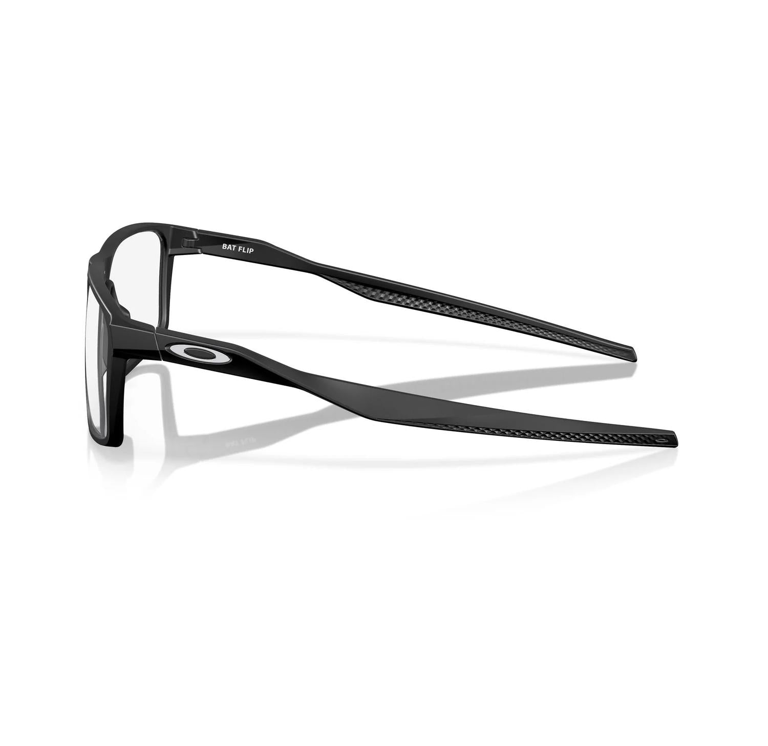 The Oakley Men's Bat Flip Ox8183 Eyeglasses in Satin Black are the perfect blend of style and function. These sunglasses feature a durable and lightweight O Matter™ frame for all-day comfort, maintaining a sport performance full-rim, square silhouette. With TruBridge™ Nosepads and Unobtainium® earsocks, they ensure a no-slip grip and adjustable fit. Made in the USA, the frame has a lens width of 56 mm, lens height of 39 mm, bridge width of 18 mm, and arm length of 148 mm.