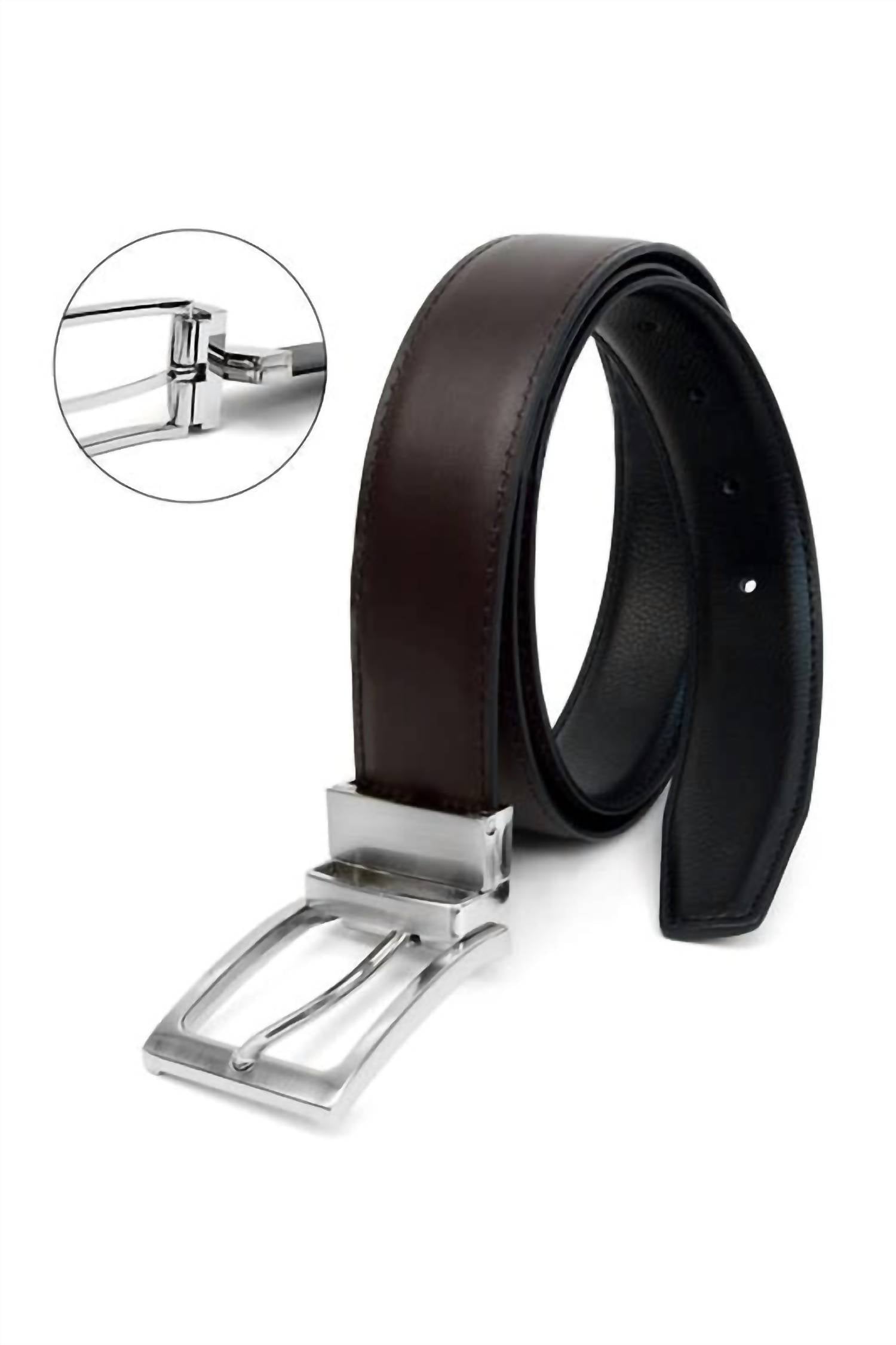 Discover versatility with the Men's Reversible Genuine Leather Belt by SELINI NEW YORK. This belt offers two colors in one with a rotating solid buckle that easily reverses from black to brown. Constructed from quality genuine leather, it is available in seven different sizes: XS (30), S (32), M (34), L (36), XL (38), XXL (40), XXXL (42).