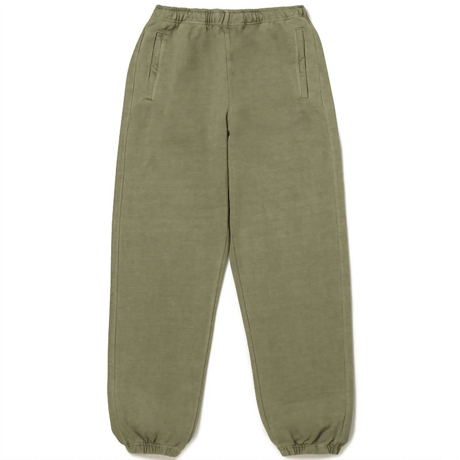 Meet the Saturdays NYC Abrams Pigment Dyed Sweatpant, a perfect blend of style and comfort in an Army Green hue. Crafted from heavyweight 460 gsm Cotton loopback French terry, this piece offers a vintage faded look with its pigment-dyed wash. Designed with a baggy fit, these sweatpants feature a convenient pull-on closure, two front pockets, a back wallet pocket, and adjustable inner drawstrings at the waist. Composition: 100% Cotton. Care instructions: Machine wash and lay flat to dry.