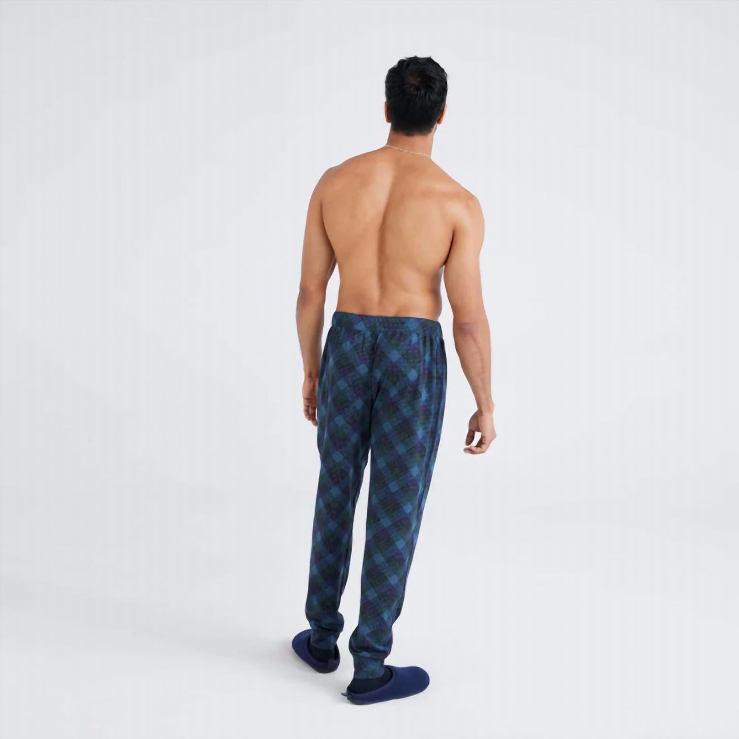 Experience ultimate comfort with the SAXX Droptemp® Cooling Sleep Pants in Angler Wrangler Black, designed for relaxed nights. These pants, featuring a 30" inseam, boast a super-soft blend of 56% cotton, 37% modal, 5% elastane, and 2% polyester, ensuring you stay cool and comfortable. The mid-rise, pull-on design and tapered leg offer a roomy fit through the butt, thighs, and legs. Enjoy innovative features like DropTemp™ Cooling technology and BallPark Pouch™, all with the ease of machine wash and tumble dry care.