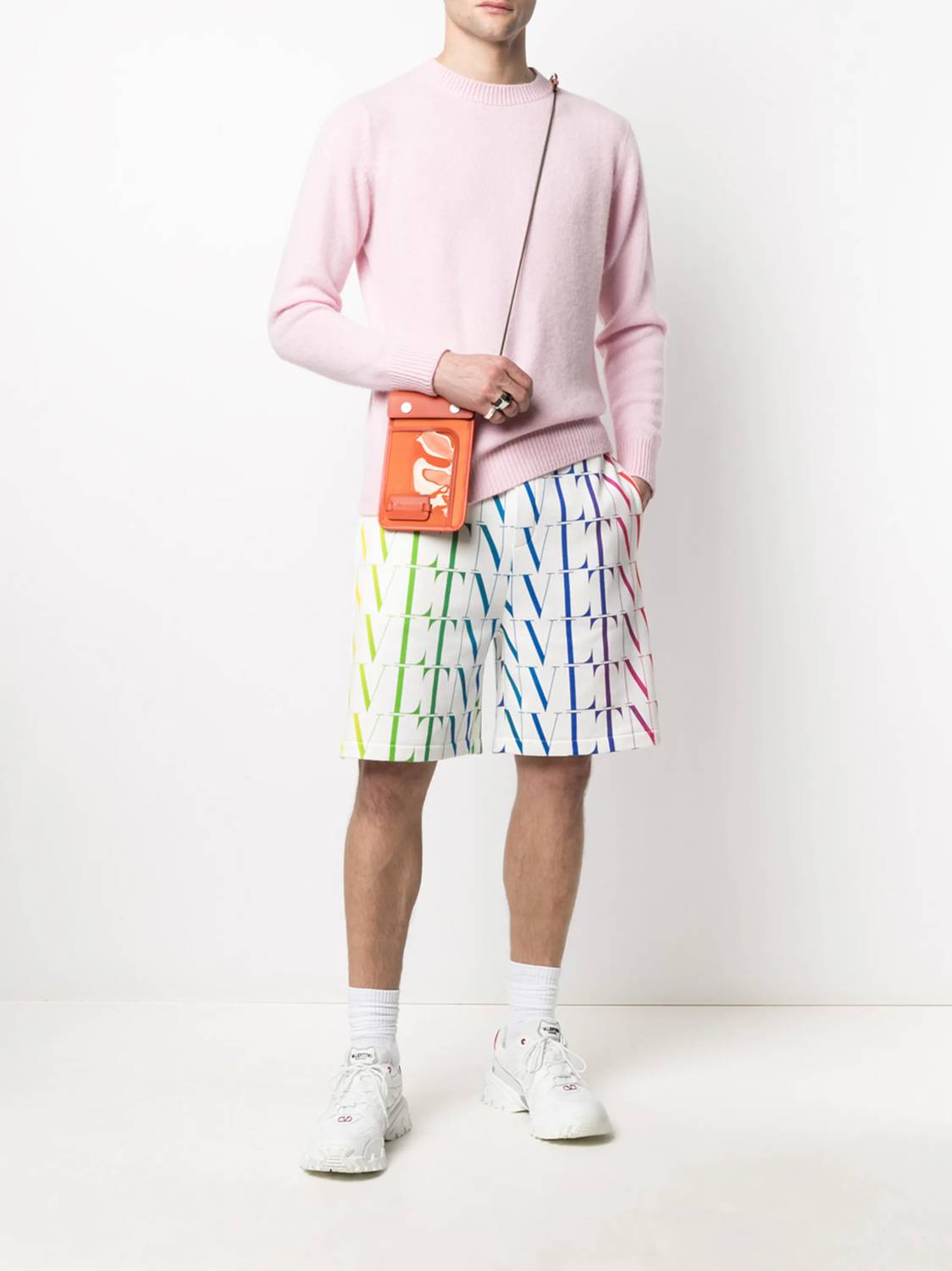 Elevate your athletic wardrobe with the VLTN Times Bermuda Shorts by Valentino, crafted for style and comfort. These knee-length shorts feature a striking all-over logo print in white and are made from a high-quality cotton blend composed of 92% cotton and 8% polyamide. Made in Italy, they offer practicality with two side slit pockets and a rear patch pocket, while the drawstring fastening waist ensures a secure fit. Care for them by hand washing to maintain their premium look and feel.