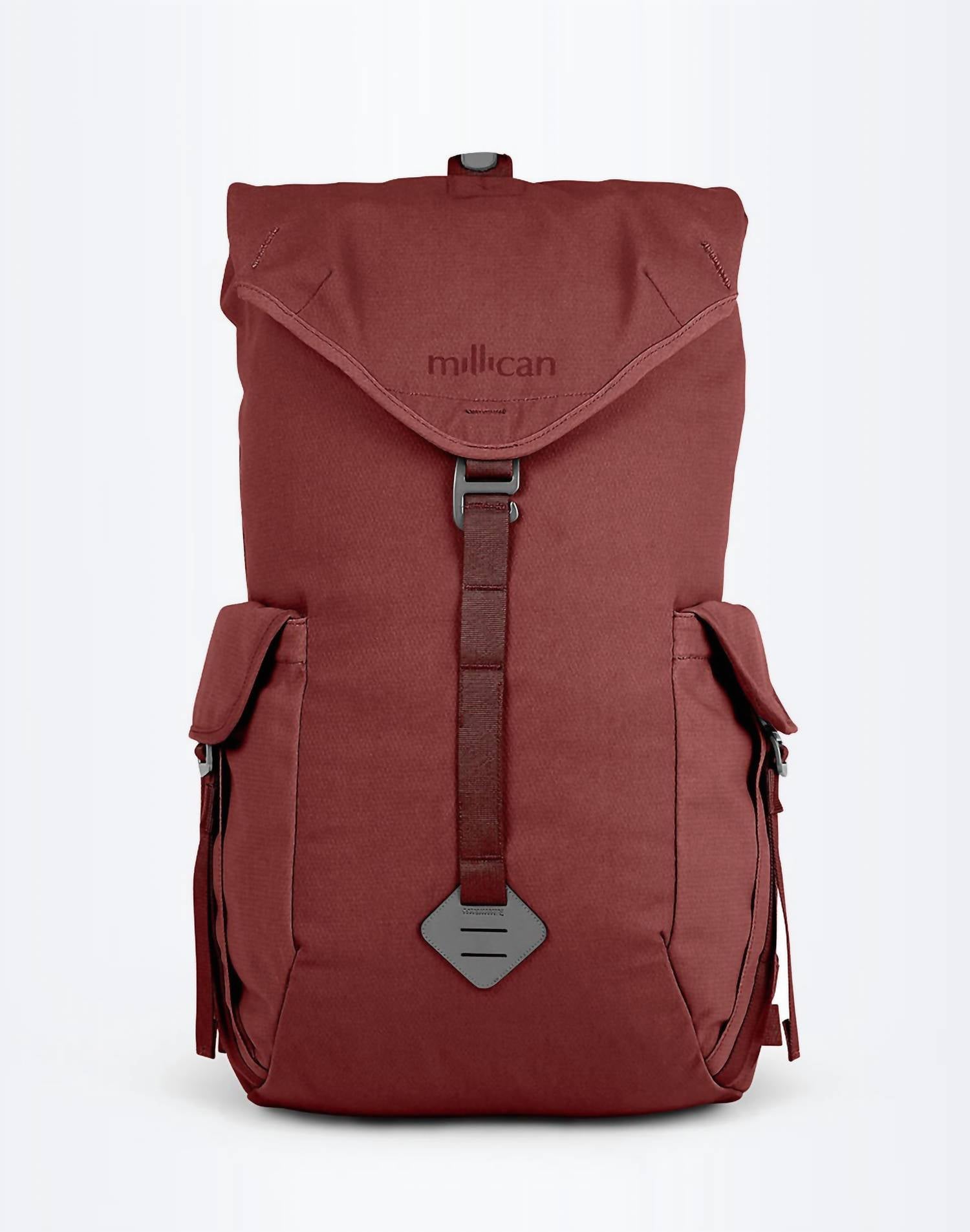 Experience the exceptional quality of the Fraser Rucksack Bag 25L by Millican, designed for the conscious traveler. This backpack in Rust features a highly weatherproof Bionic Canvas material, with an impressive 25-liter capacity to accommodate all your essentials. It includes multiple buckled pockets, a drawcord main compartment, and a 15" zippered laptop sleeve for organized storage. Enhanced with padded mesh and adjustable straps, this versatile bag ensures comfort during your adventures.