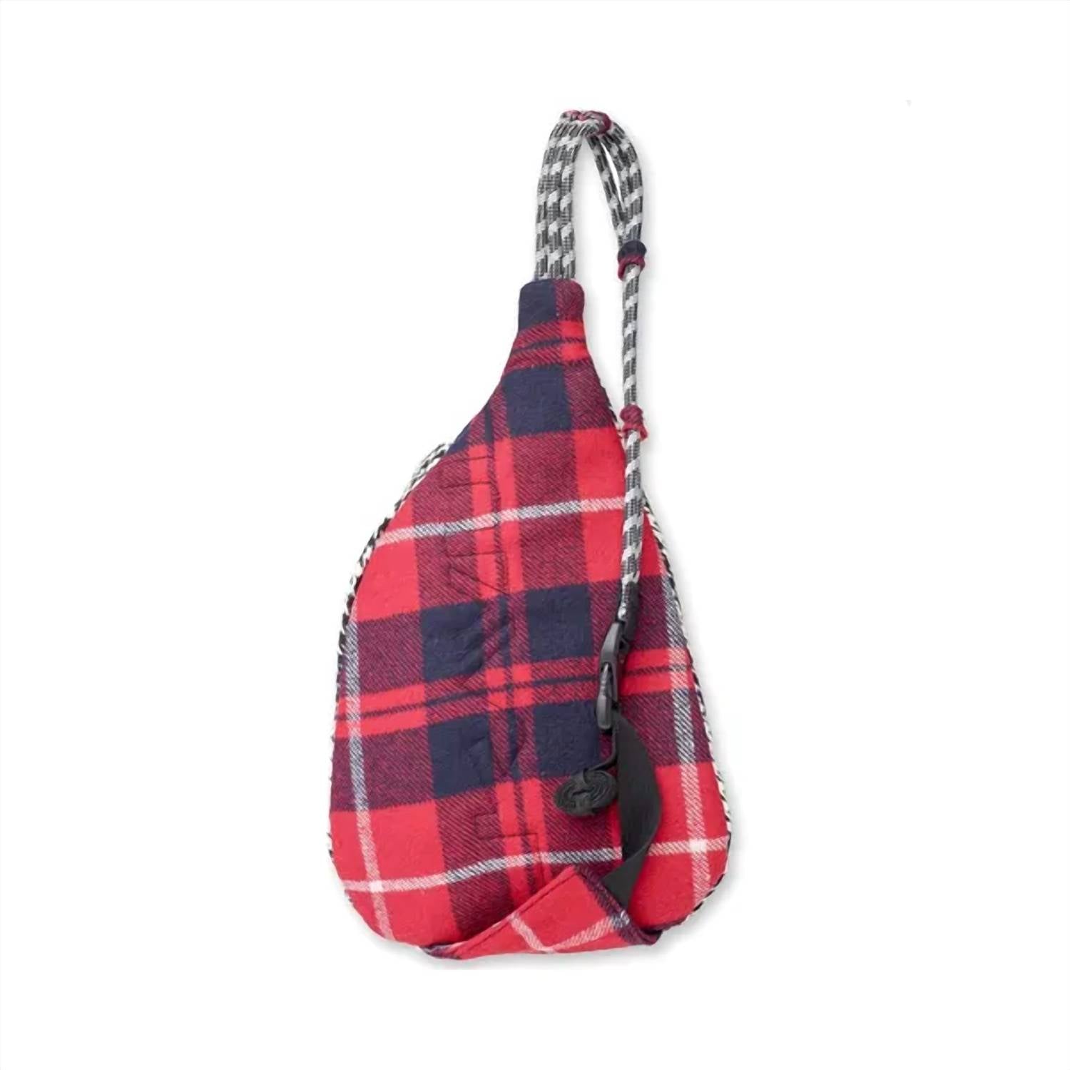 The KAVU Mini Rope Mix Sling Pack is a stylish and functional choice for your on-the-go lifestyle. Designed with an adjustable rope shoulder strap featuring a side release buckle, this pack offers convenient access with its two vertical zip compartments and two key or cell phone pockets. Crafted from a 10% Wool, 90% Polyester houndstooth fabric, it features a padded back for comfort and signature KAVU embroidery. Dimensions are 20" x 11" x 5", with a crossbody strap length adjustable from 22" to 44".