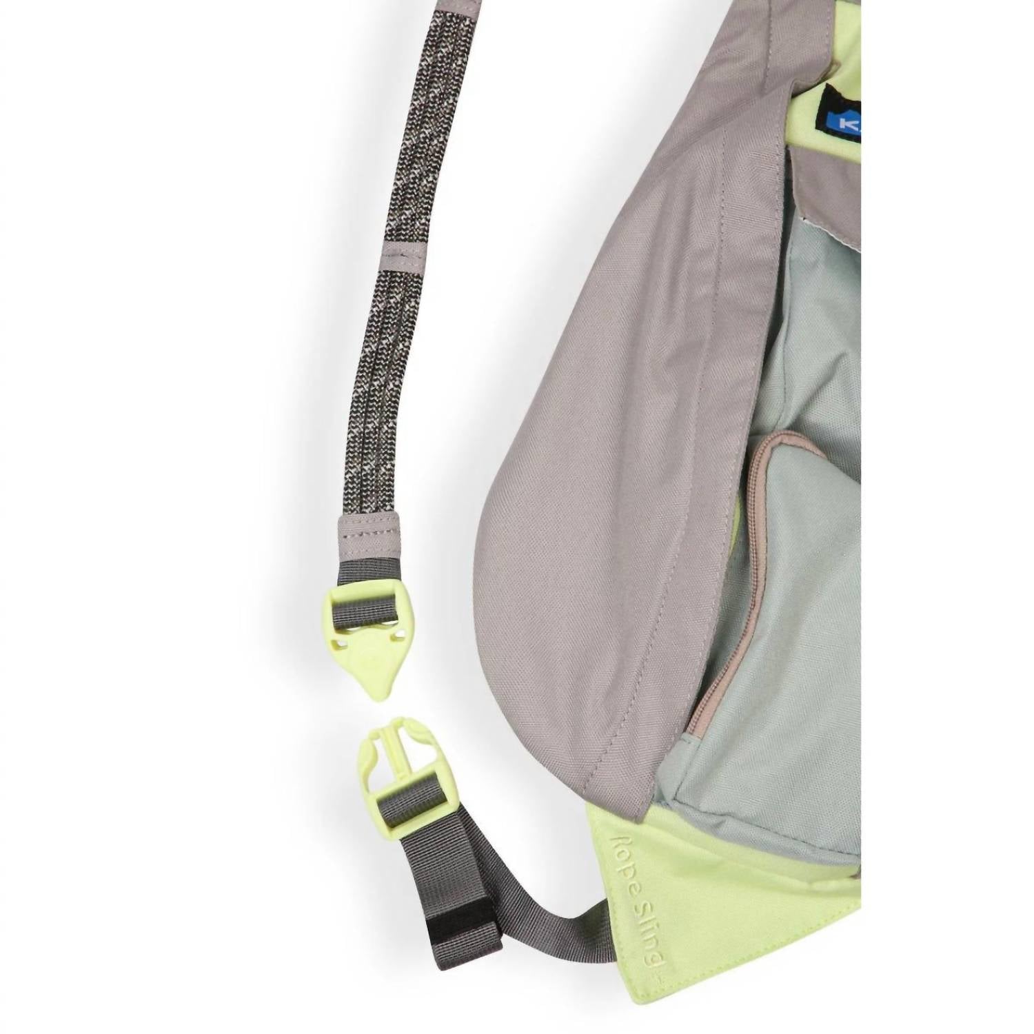 Explore the practical elegance of the KAVU Mini Rope Bag in sage terrace, crafted from durable, water-resistant 11oz 100% 600D polyester. Featuring an adjustable rope shoulder strap (20" - 40") and a side release buckle, this bag maintains comfort with a padded back adorned with KAVU embroidery. It offers versatile storage with two vertical zip compartments, two key or cell phone pockets, and specific dimensions for smaller essentials (5" x 3" and 6.5" x 3.5"). With a compact size of 16" x 9" x 4" and a weight of just 0.6 lbs, it's the perfect companion for daily adventures.