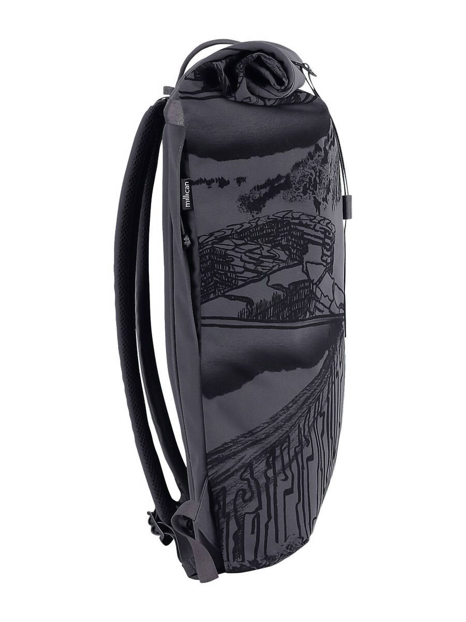 The East Pack Bag 18L by Millican is a sustainable choice made from a single sheet of 100% recycled polyester canvas, utilizing 40 used PET bottles. This grey backpack features robust aluminum outer shell details and offers an easily accessible external laptop pocket, suitable for devices up to 15 inches, along with additional compartments for papers and valuables. Dimensions of this practical pack are 50 x 31 x 15 cm, designed with ergonomic shoulder straps for enhanced comfort. Ideal for those seeking both functionality and eco-conscious materials in their daily carry.