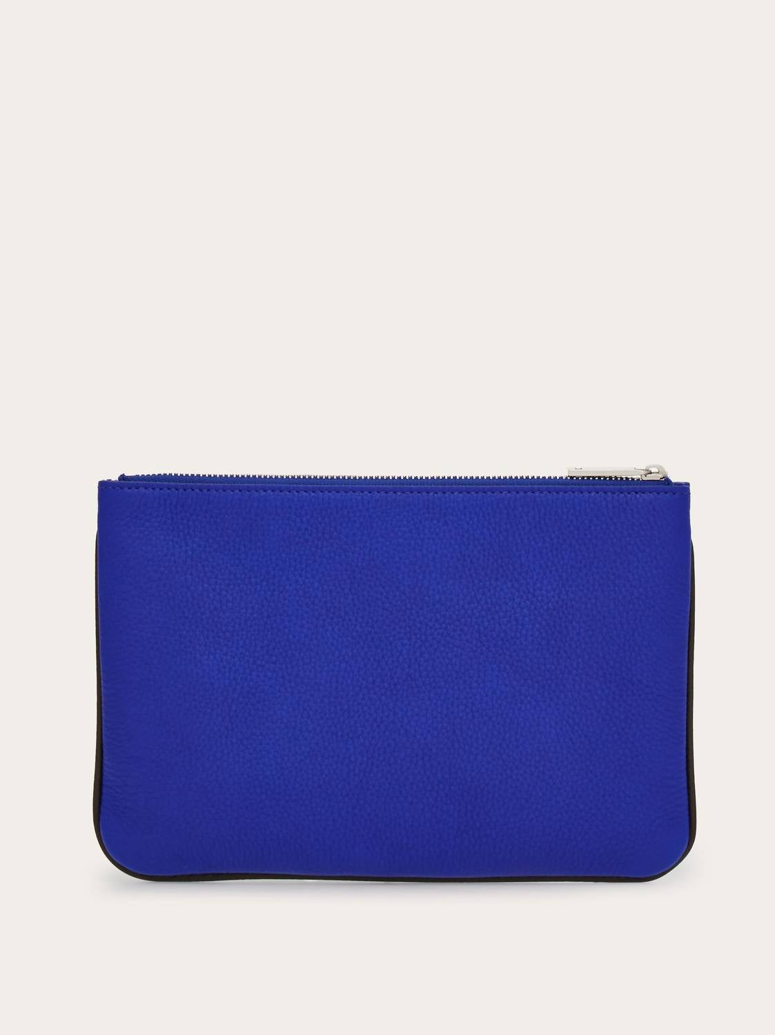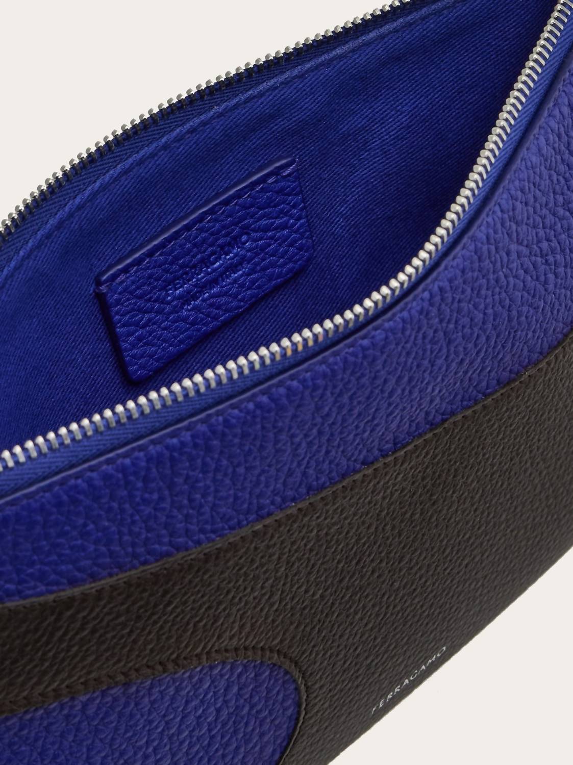 Experience luxury on-the-go with the Men's Cut-out Detail Leather Pouch Phone Case by Salvatore Ferragamo. Crafted from premium hammered calfskin, this chic accessory features a stylish two-tone design and a practical zip fastening. Measuring 5.5 inches in height and 8.2 inches in length, it's the perfect fit for your essentials. Expertly made in Italy, this case effortlessly combines functionality with timeless style.