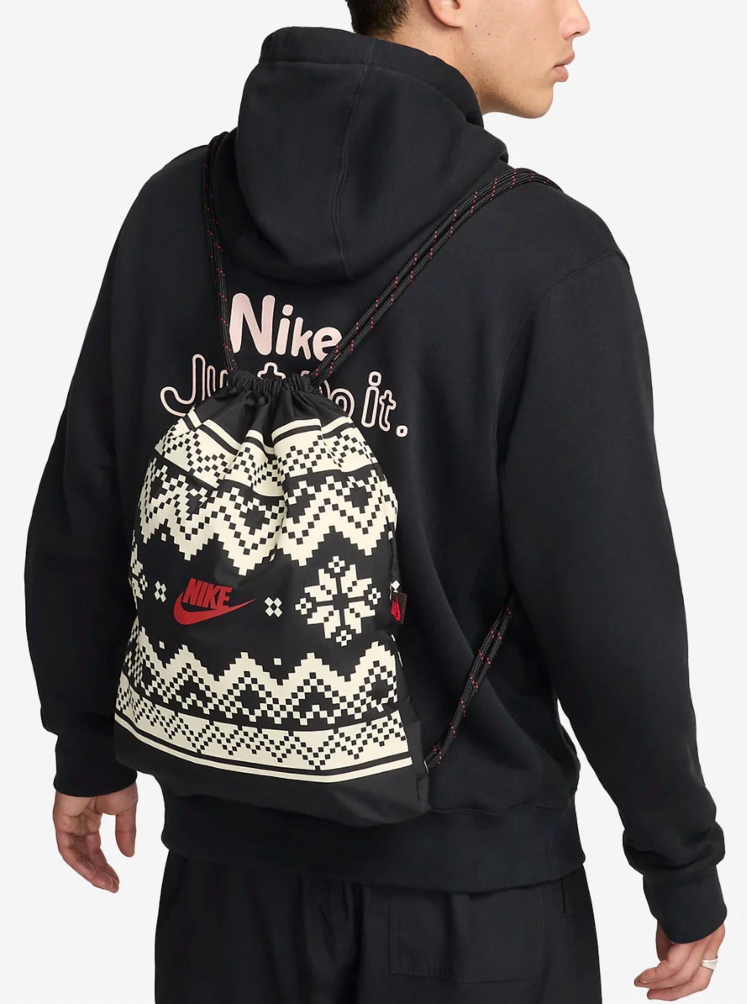 Introducing the NIKE Women's Drawstring Sack Pack, a stylish and functional accessory in Black Coconut. Crafted from durable polyester fabric, this backpack offers a spacious main compartment with a convenient drawcord closure for easy access. It includes a zipper side pocket to securely store small essentials. This versatile piece is perfect for on-the-go storage needs.
