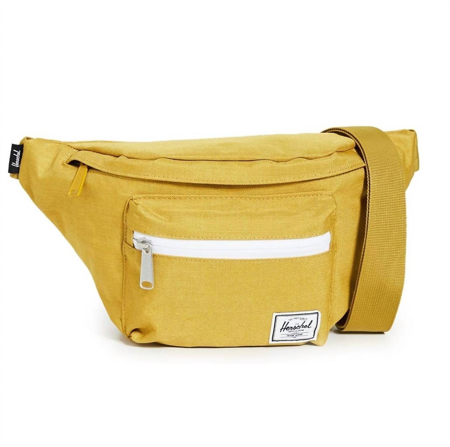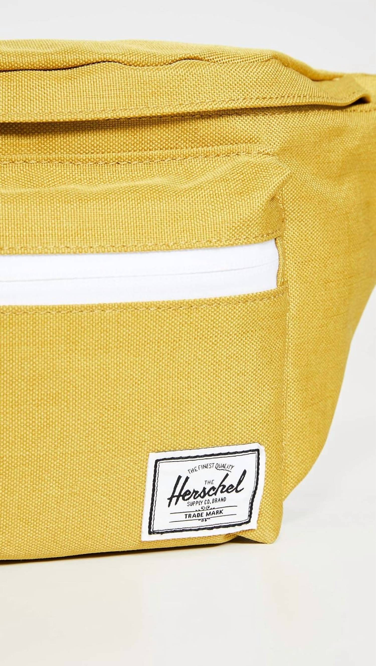 Introducing the Seventeen Good Poly Smu Waist Pack by Herschel, designed for both style and practicality in a striking Arrwd color. This versatile bag features a signature striped fabric liner, a classic woven label, and a waterproof zipper for the front storage pocket, complete with a key clip. It comes with a clip fastened adjustable webbing strap, allowing you to wear it around the waist or over the shoulder. Enjoy the ample main compartment that makes it perfect for everyday use.