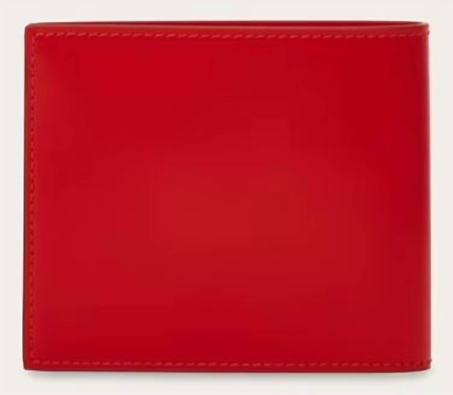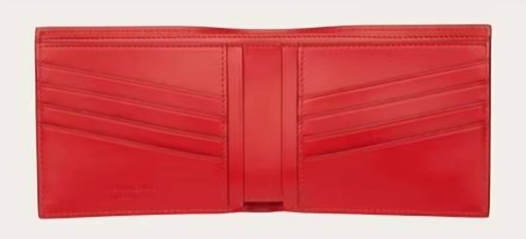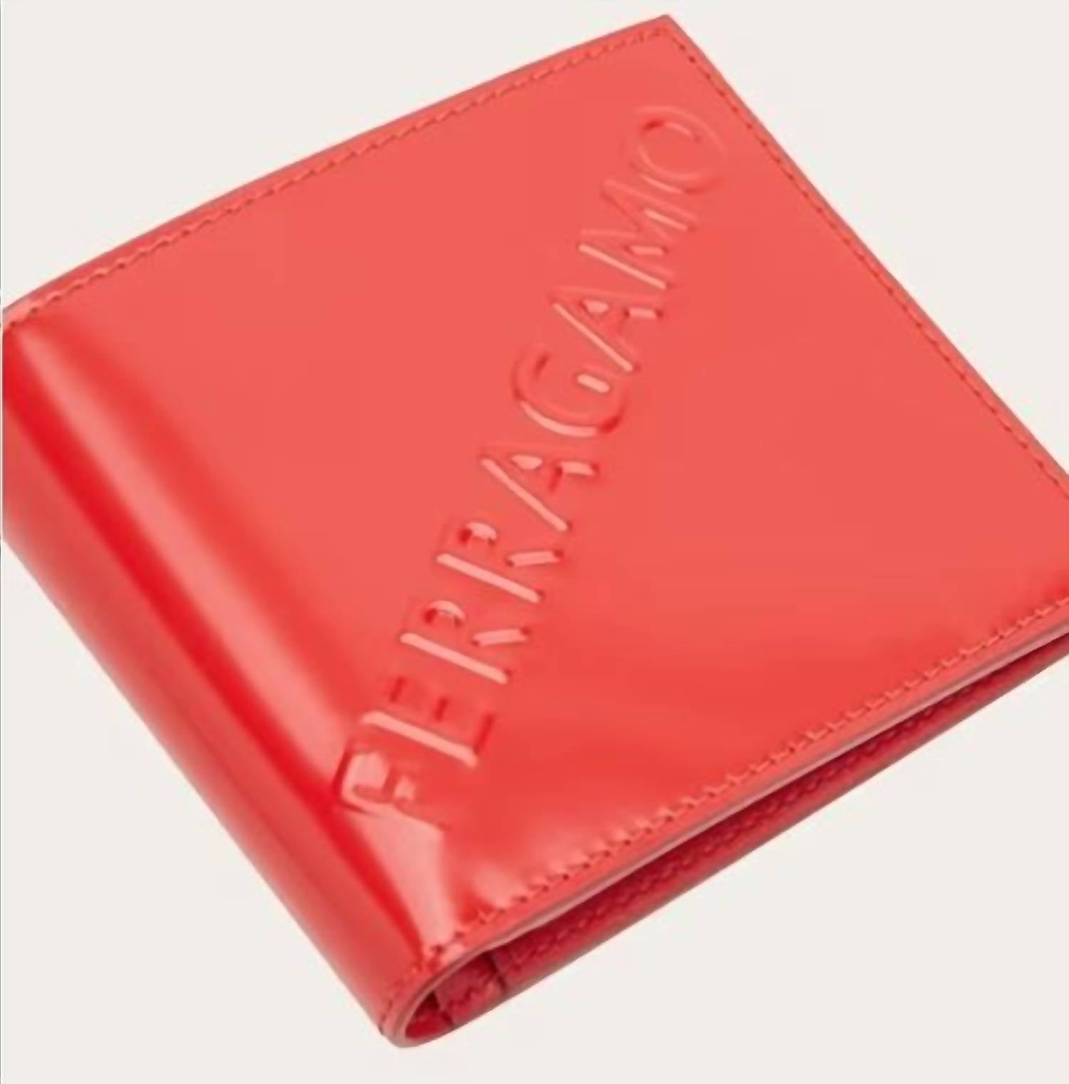 Introducing the Salvatore Ferragamo Men's Embossed Logo Leather Bifold Wallet in striking Flame Red, a blend of luxury and functionality. Crafted in Italy from 100% calf leather, this wallet features an embossed 3D logo across the front and tonal stitching for a refined finish. With a width of 4.72", height of 4.13", and depth of 1.18", it offers ample space, including 8 card slots, 4 pockets, and 2 bifold slots. This elegant wallet is a testament to superior Italian craftsmanship.