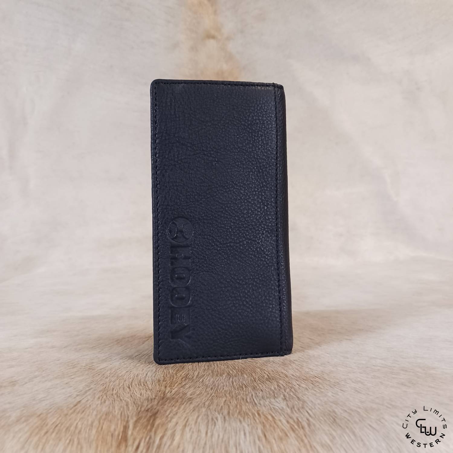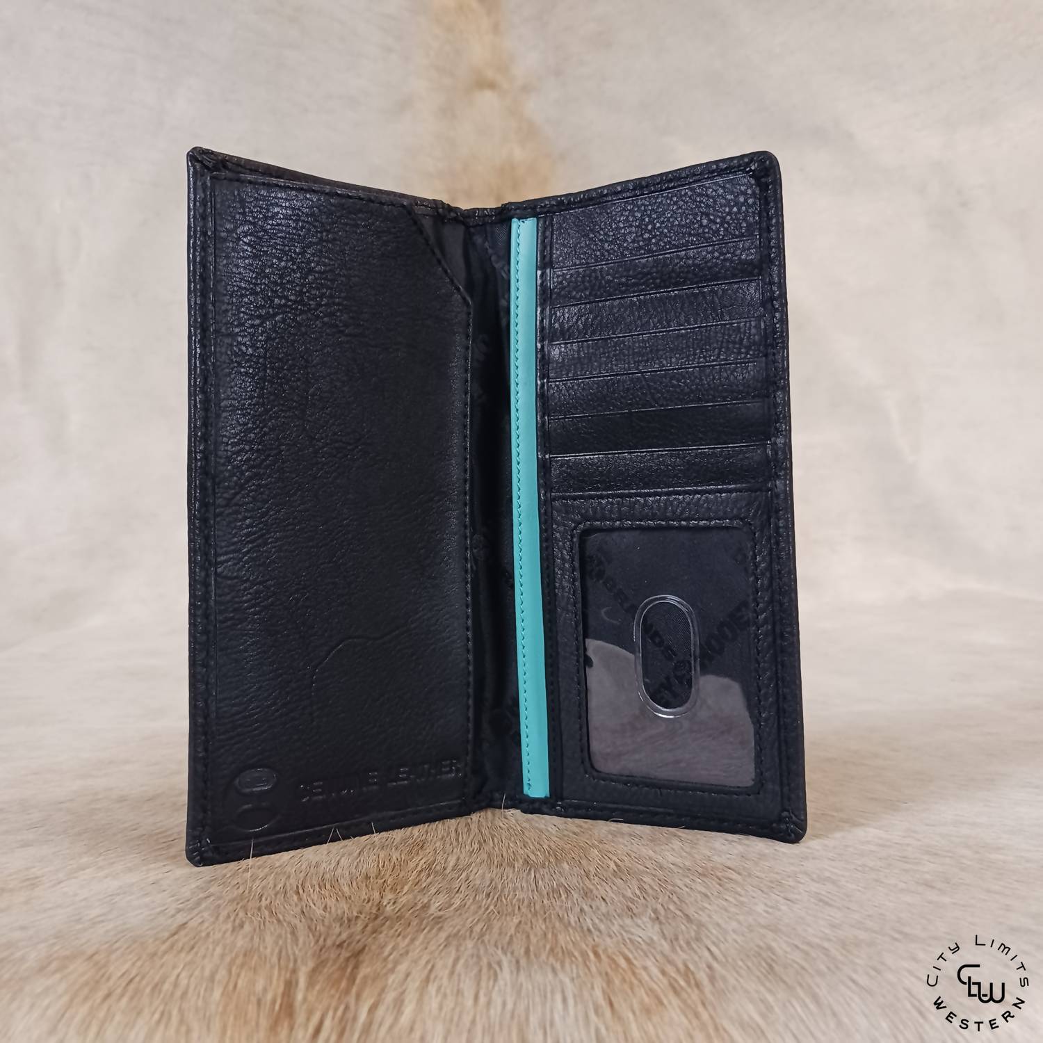 Discover the Men's Hawk Woven Aztec Rodeo Wallet by Hooey, where style meets craftsmanship. This wallet showcases hand-woven genuine leather with a striking Aztec print inlay, featuring a sophisticated black, red, and ivory exterior and a classic black interior. Designed for functionality, it offers a single fold construction, an ID window pocket, six card pockets, two long storage pockets, and a back pocket for additional storage, all elegantly housed in a Hooey collector tin. Made from natural materials, each piece is unique, reflecting subtle leather variations.