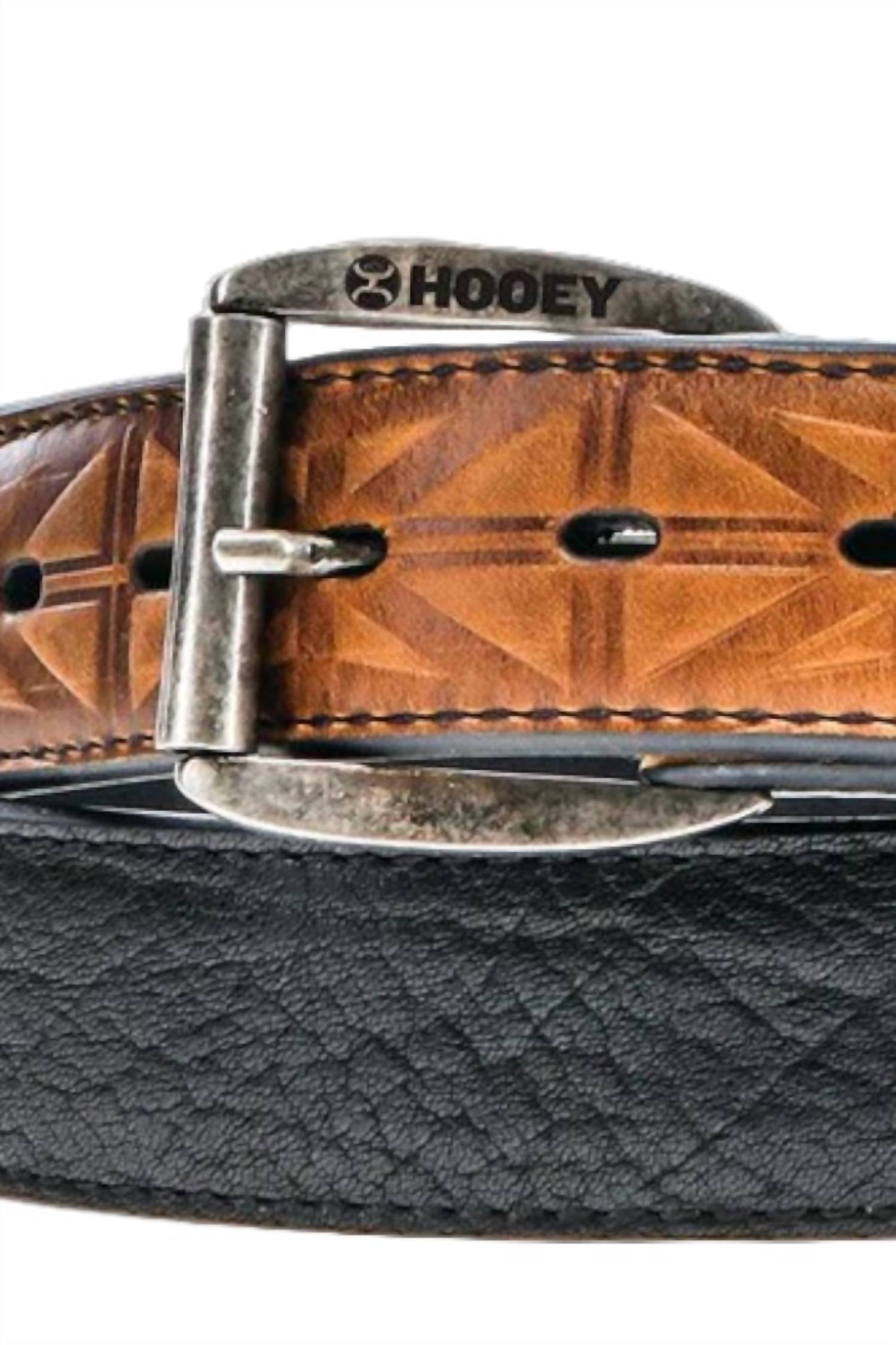 Introducing the Hooey "HOG" Bullhide Leather Belt, a standout from the Roughy Original Belt Collection. Crafted from genuine black leather, it features detailed brown HOG logo and embossed billets for a rugged appeal. At 1.5 inches wide (38mm), this belt is designed for both style and durability. The tongue buckles are sized from buckle end to center hole, and it's recommended to size up from your waist or jean size. Please note, slight color variations in leather are to be expected due to its natural characteristics.