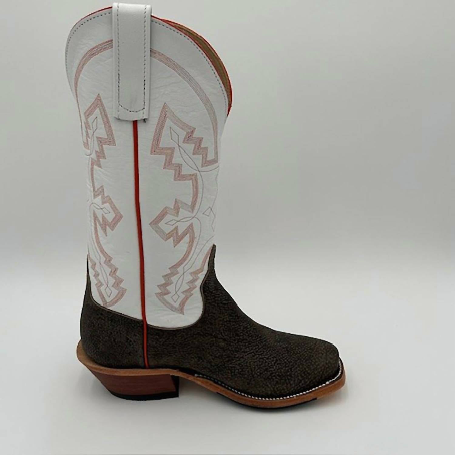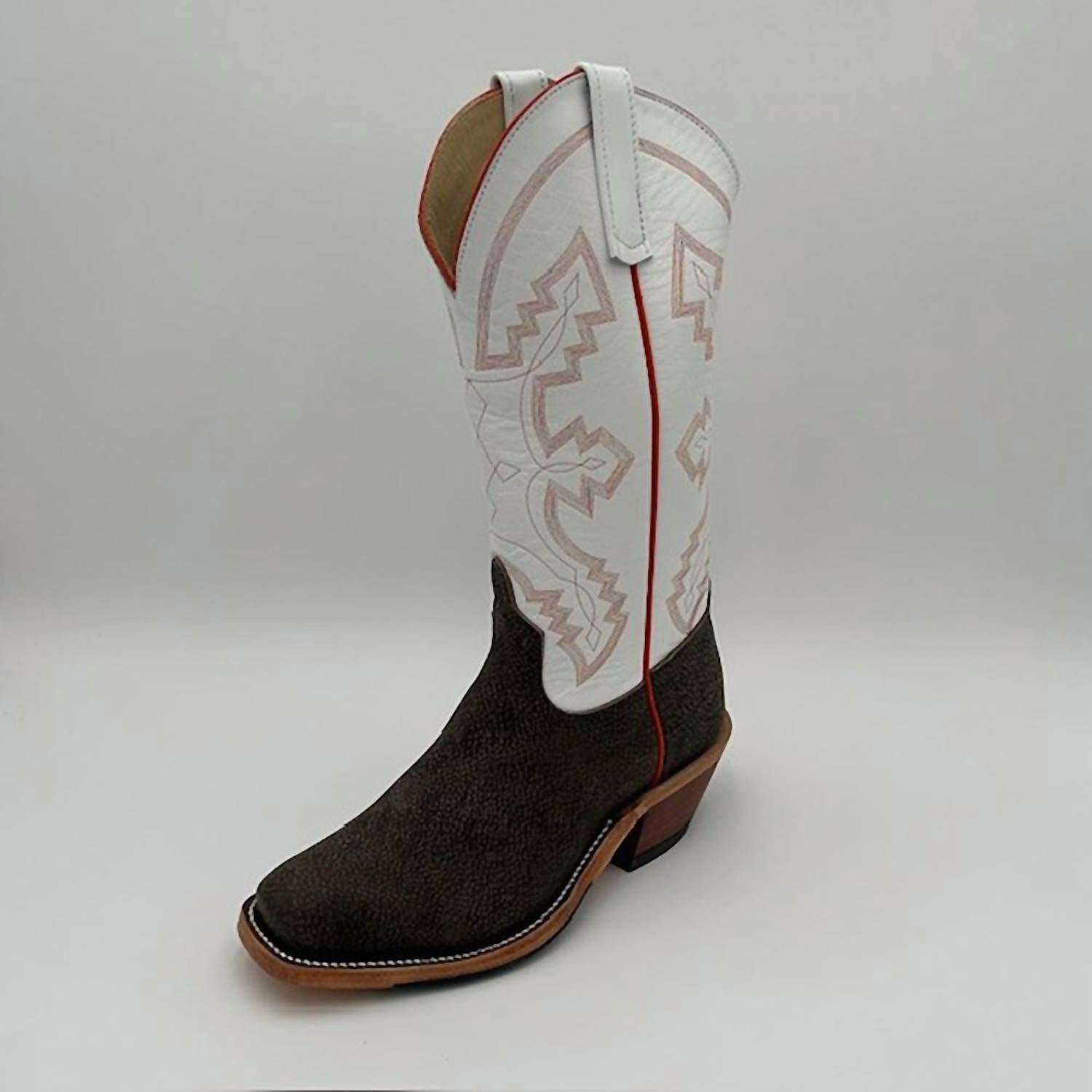 Step into adventure with the Men's Exotic Safari Giraffe Cutter Toe Boot by Anderson Bean Boots, crafted in a striking rust safari and white colorway. Featuring a distinctive squared toe and a low heel height of 1 1/4"-2", these boots perfectly blend style and comfort for your summer adventures. Ideal for western-inspired looks, the flat heel offers easy wearability, making them the perfect choice for vacation escapades. Embrace the spirit of the wild west with a hint of exotic flair.
