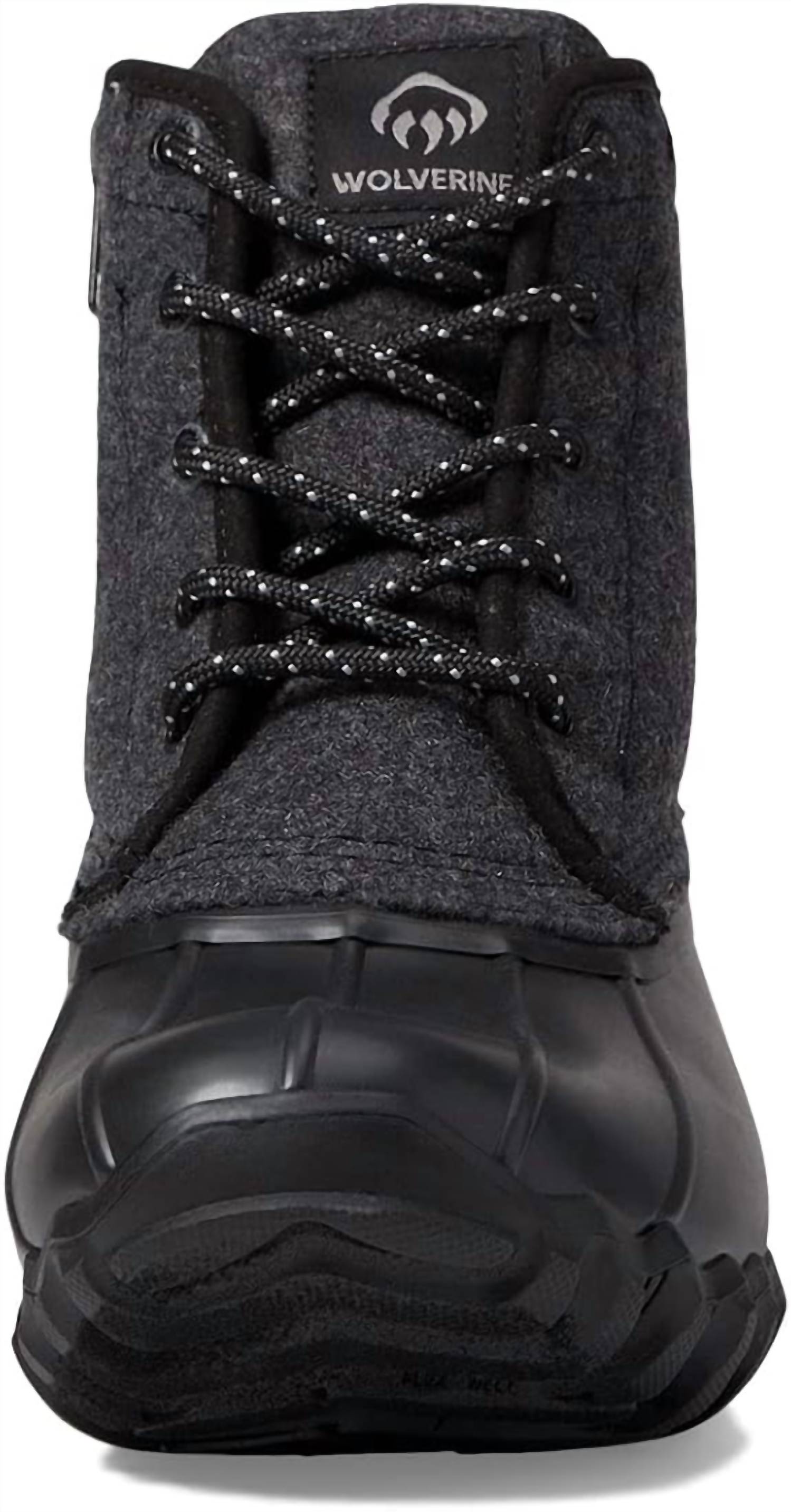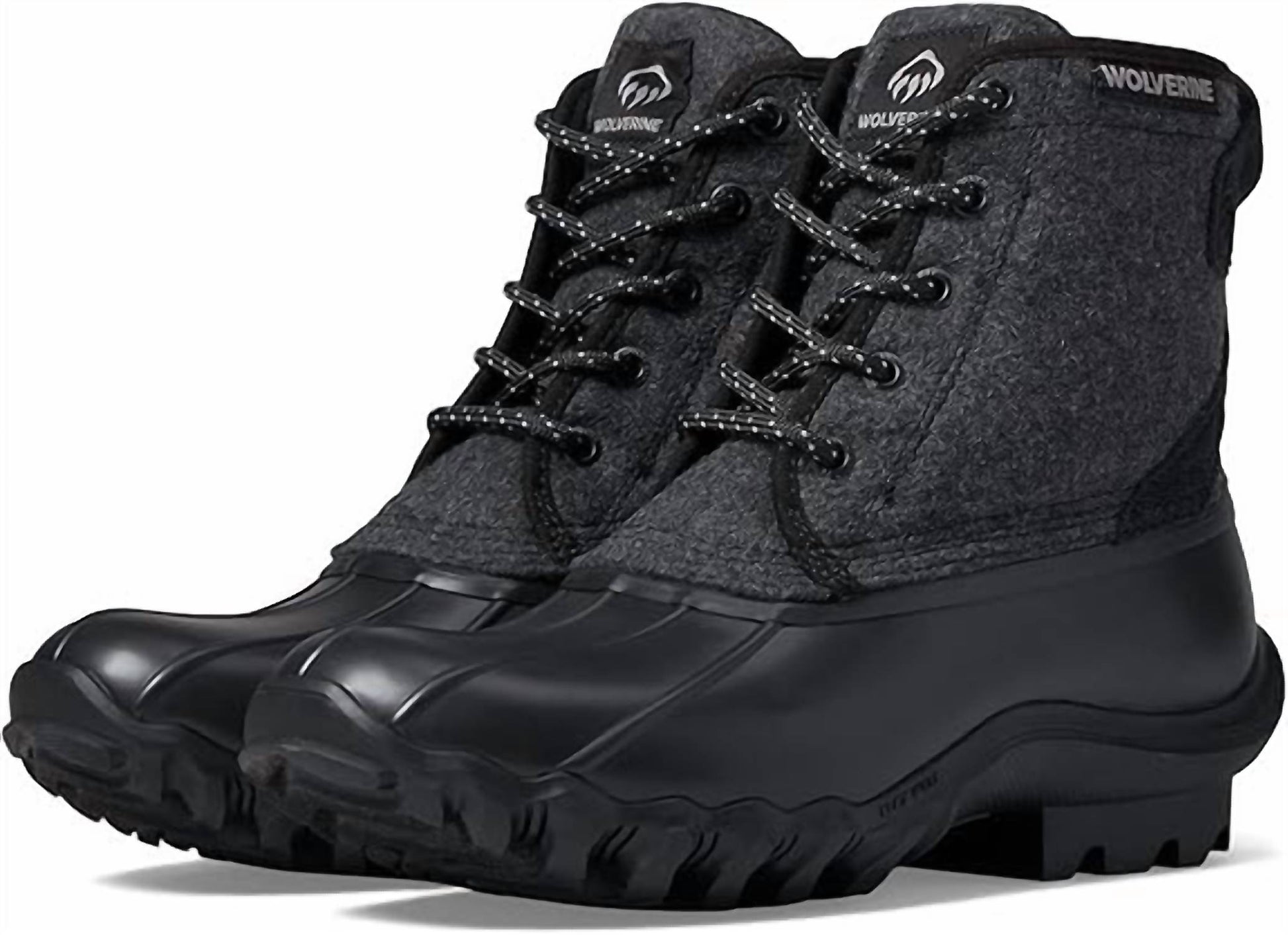 Introducing the Men's Torrent Ankle Boots by Wolverine, crafted in sleek wool for a stylish yet functional appeal. These boots feature a round toe shape and are constructed from durable rubber, ensuring comfort and longevity. Designed with a low block heel measuring 1 1/4" to 2", they promise both stability and a subtle lift. Perfect for adults seeking a blend of performance and sophisticated design.
