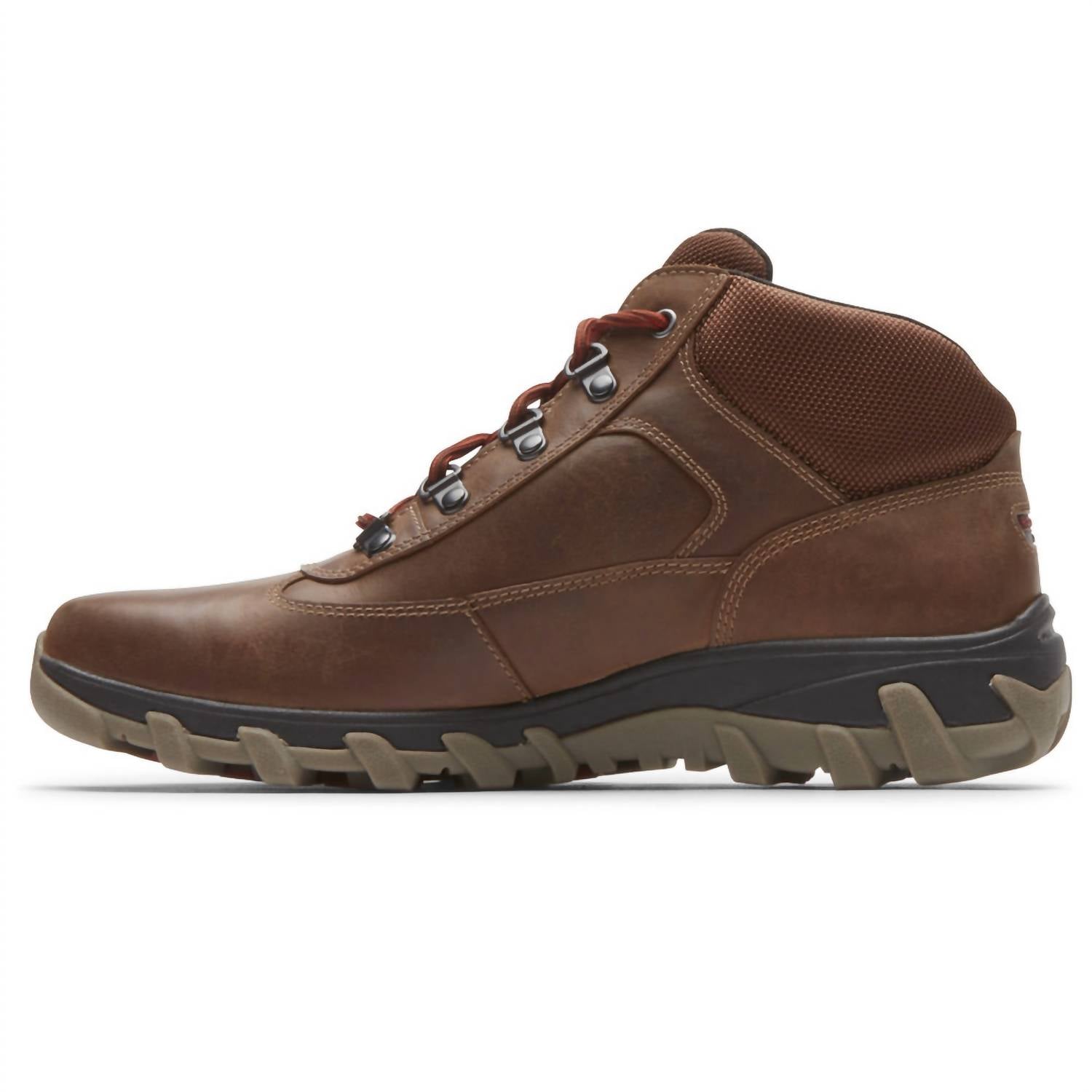 Meet the Men's Cold Springs Plus Chukka Boots by ROCKPORT, a robust choice for hiking in style. These bison-colored boots feature genuine suede leather, ensuring durability and comfort in rugged conditions. The Hydro-Shield® waterproof construction and rubber outsole offer reliable traction through snow, rain, and urban landscapes. Designed with a premium footbed and EVA midsole, these boots provide lightweight impact absorption and breathability with their textile lining.