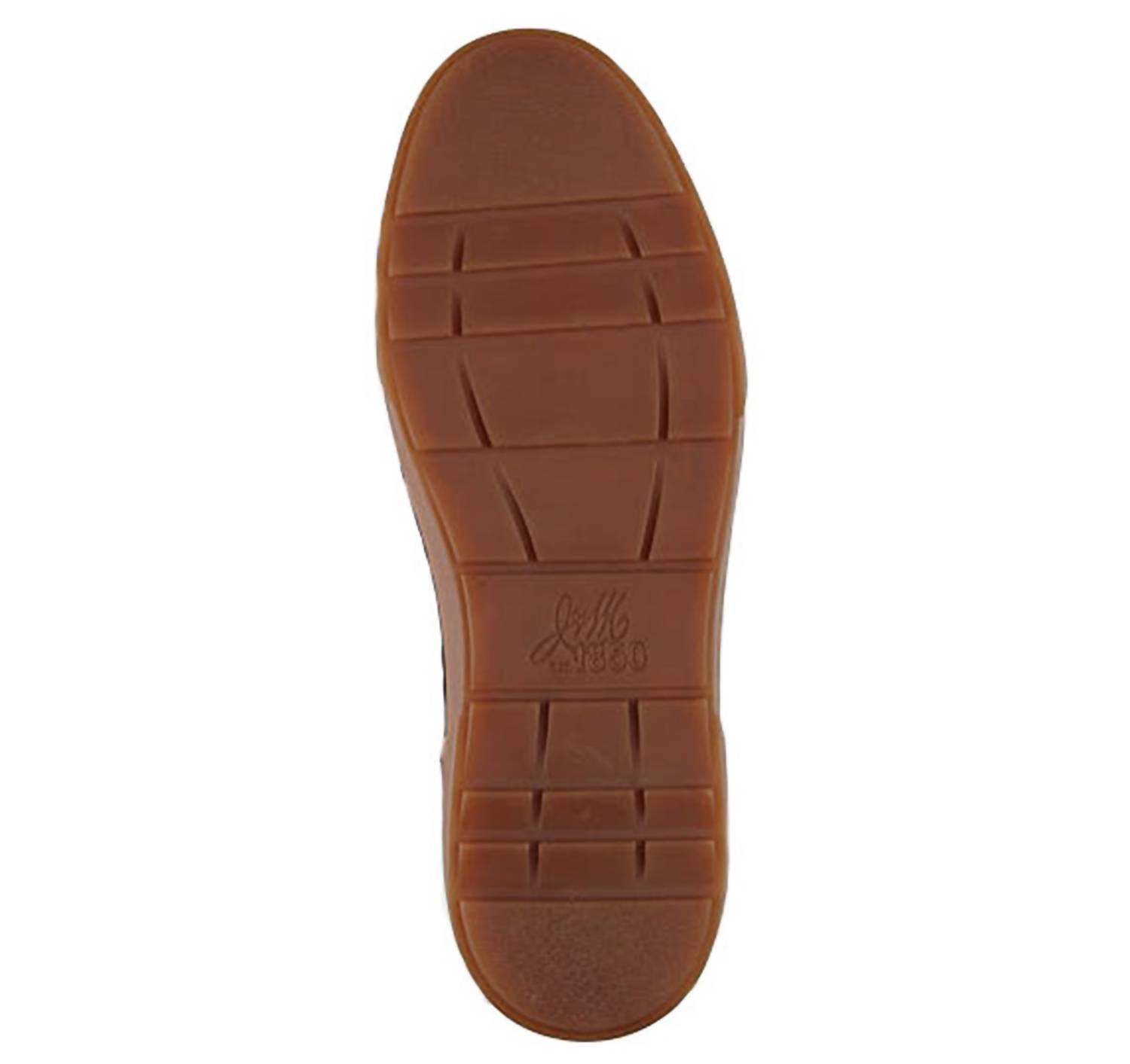 J&M EST. 1850 Collection. Premium Italian oiled leather feels soft. Gains character. Leather/textile lining. Molded. Removable cushioned insole. Genuine rawhide laces. Natural latex rubber sole. Great traction. Durability. Bouncy cushioned feel.