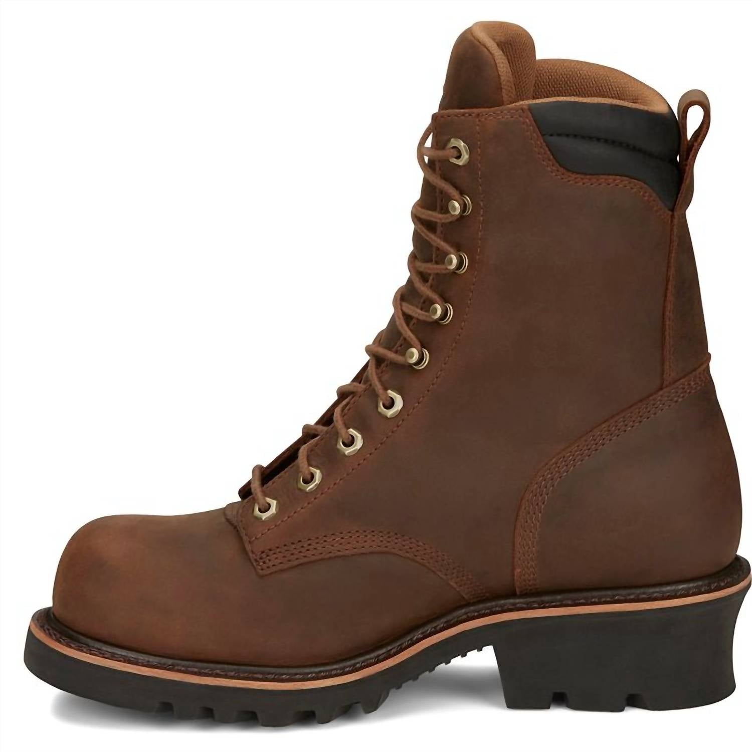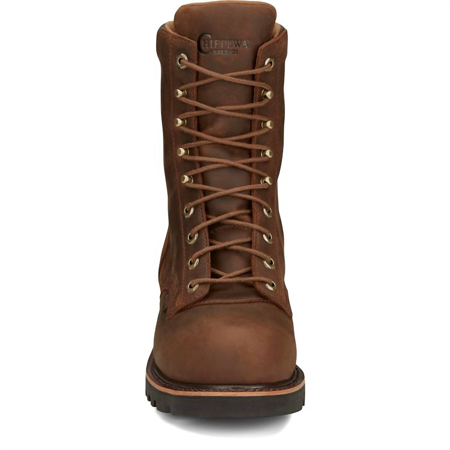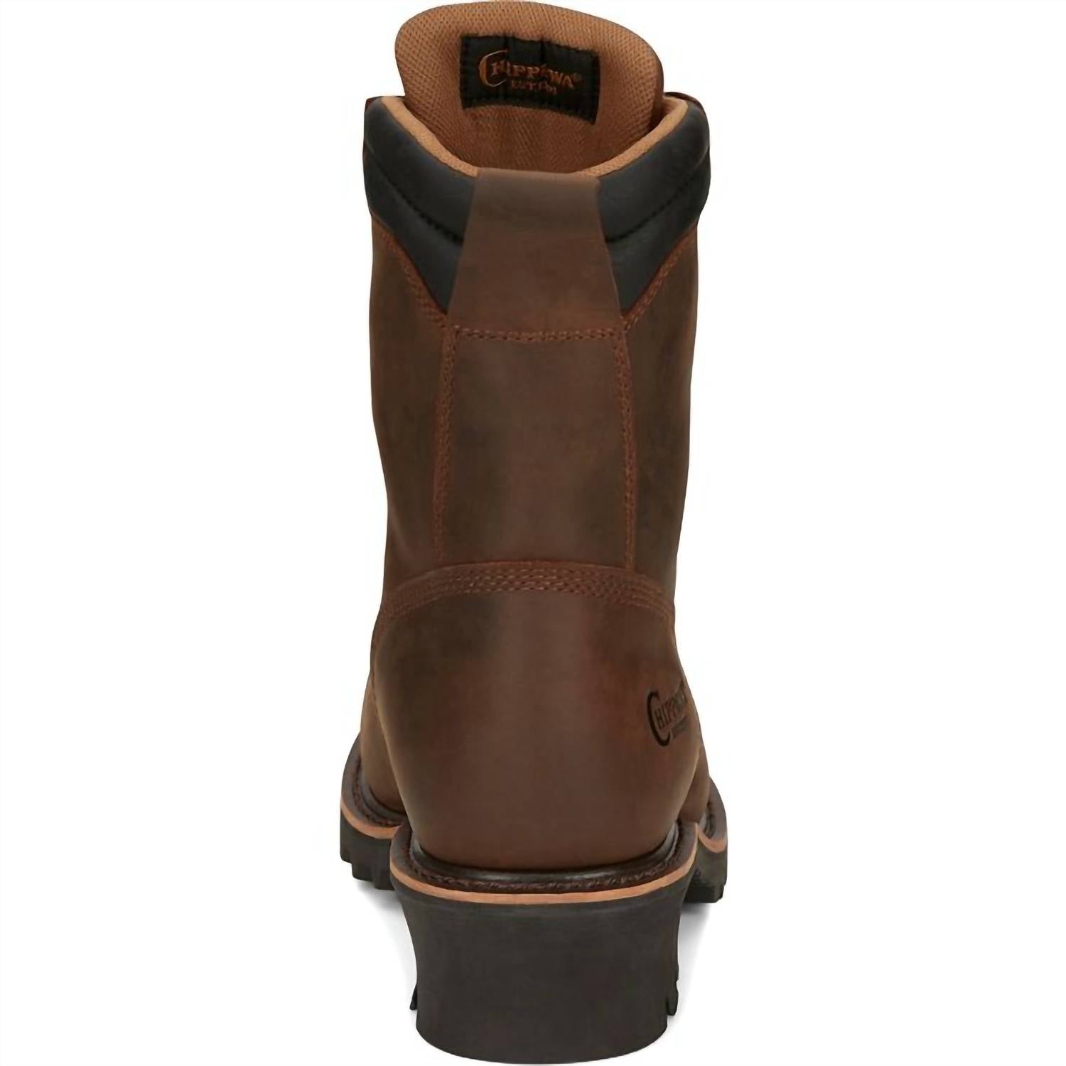 Introducing the Men's Valdor 8" Waterproof Comp Toe Boot by Chippewa, crafted from heavy-duty tan premium waterproof full grain leather. Designed for workwear and travel, this boot features a composite safety toe and metallic shank for enhanced protection. The orthotic insole, along with the hi-tech wave mesh lining, ensures all-day comfort, while the Tred outsole provides superior traction with its aggressive tread pattern and block heel design. Ideal for the fall season, these boots are finished with Goodyear® PVC welt construction and a round toe shape.