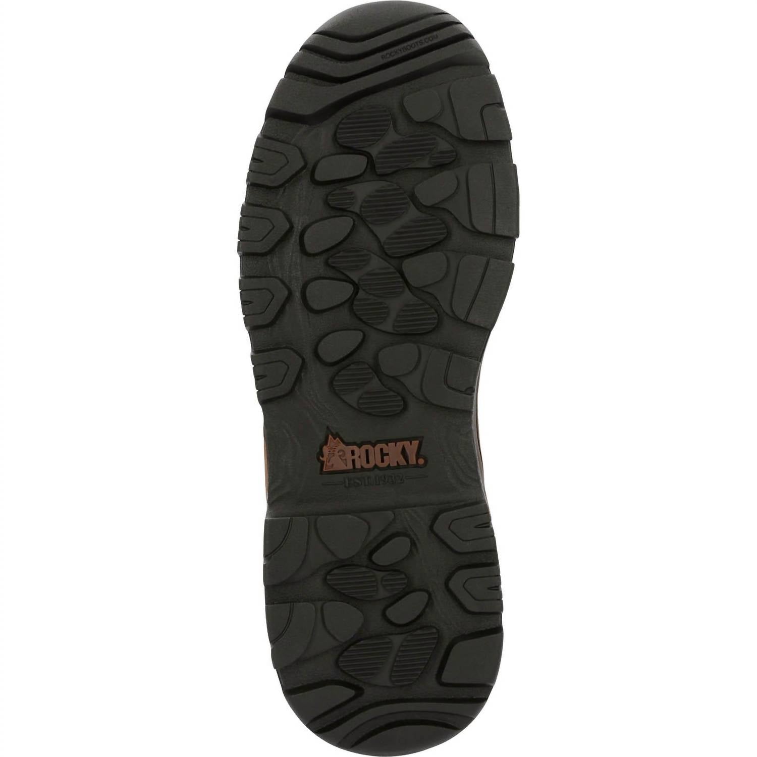 Features a waterproof full-grain leather upper combined with 900 denier Cordura® for durability. The lightweight and flexible molded EVA midsole ensures comfort, while 400 grams of 3M™ Thinsulate™ Ultra Insulation provide warmth. It includes Rocky® Waterproof construction and a light, flexible cement construction for added durability. The Terra Suspension Footbed offers support and cushioning, and a fiberglass shank enhances stability. The rubber outsole provides reliable traction. Standing 8 inches tall, this boot is designed to perform in challenging conditions.