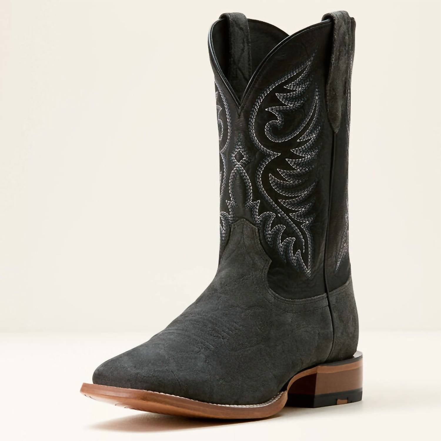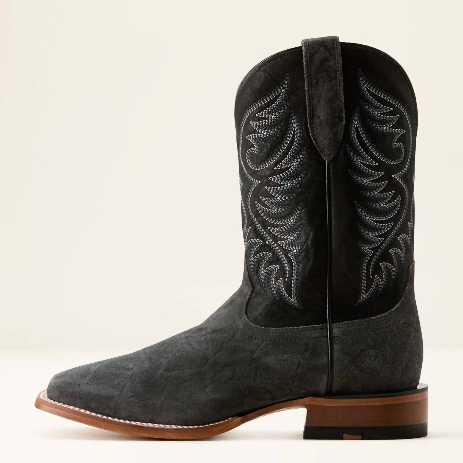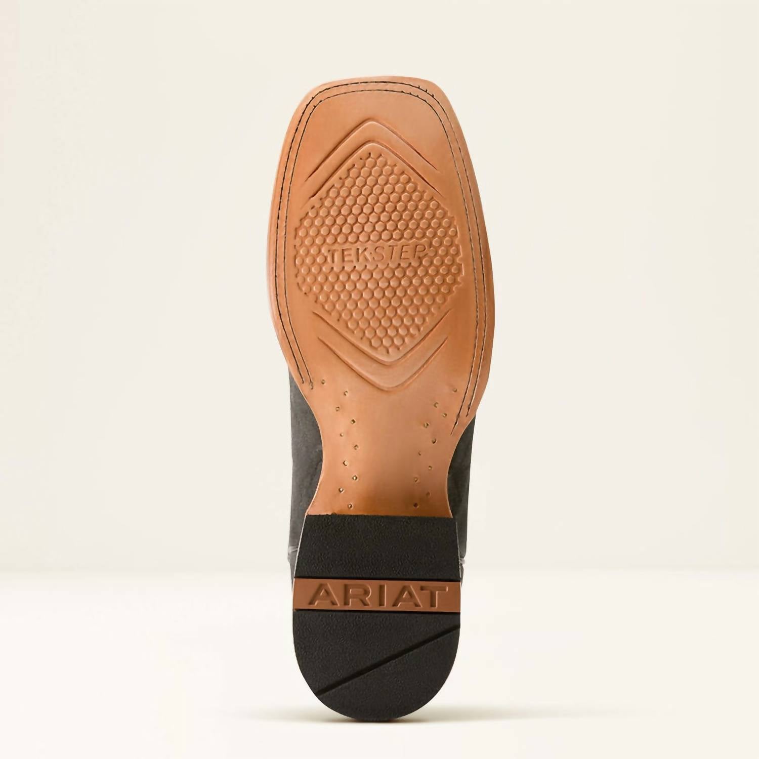Introducing the ARIAT Men's Wiley Wide Square Toe Boot, a testament to rugged elegance in Roughout. Crafted from premium leather, this boot boasts a 13-inch tall shaft adorned with a unique five-row stitch pattern. Its design includes a TekStep sole for superior cushioning, a Goodyear welt construction, and a removable all-day cushioning insole. Finished with a 1.5" Horseman block heel and a distinctive wide square toe, this Western trend boot promises unparalleled style and comfort.