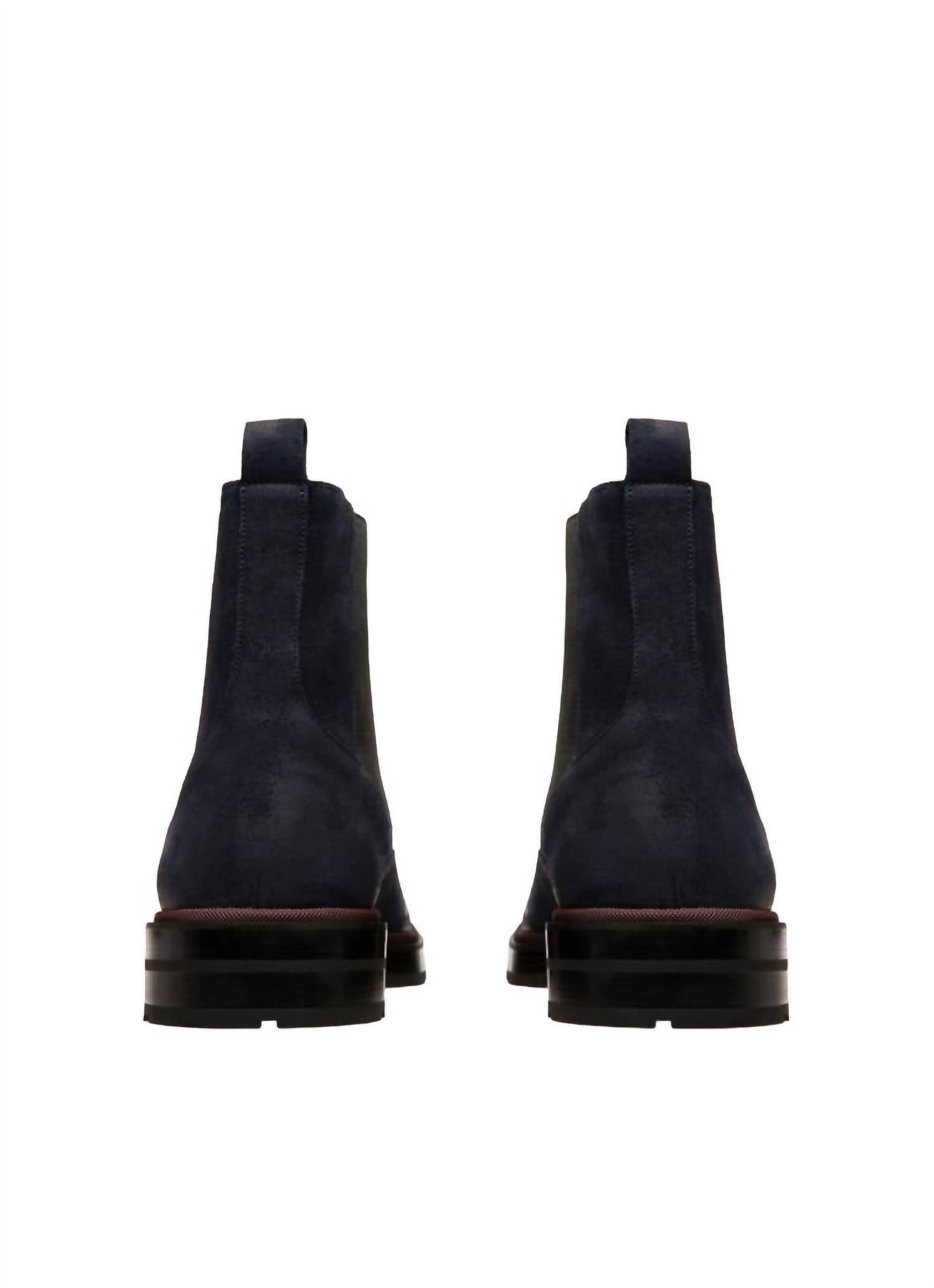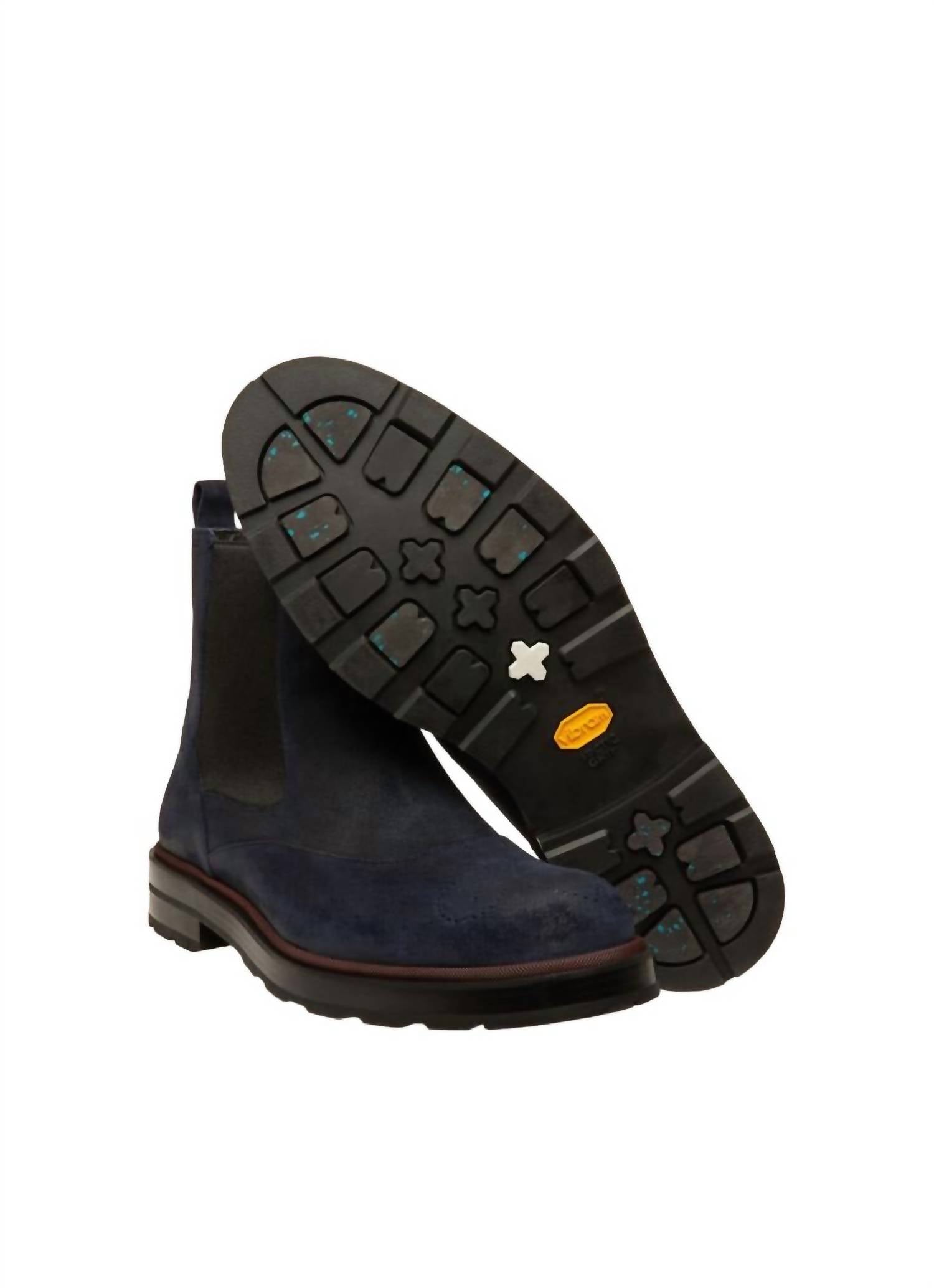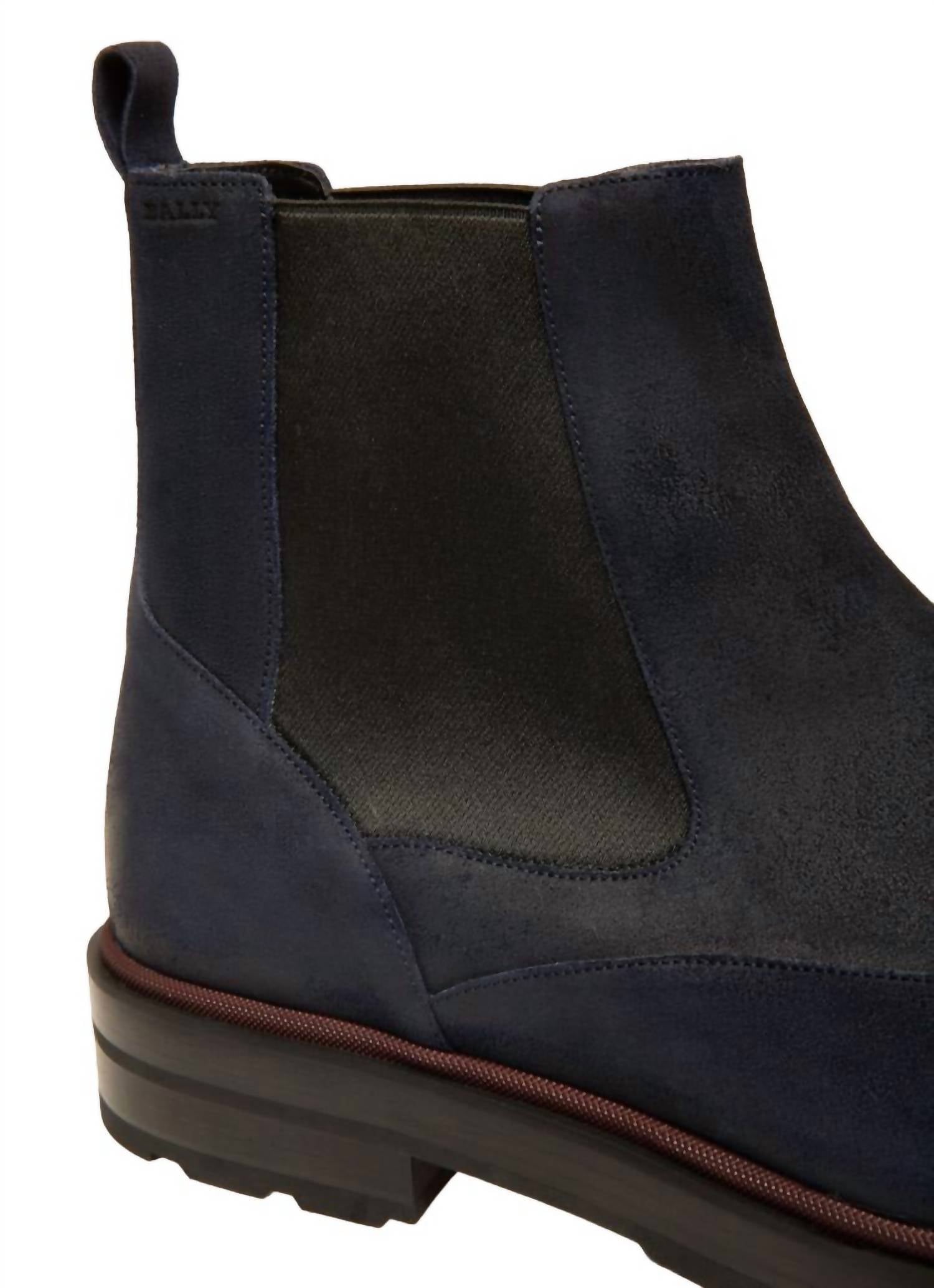 The Bally Corad Men's Chelsea Boots are crafted from premium midnight bovine suede leather, embodying a blend of sophistication and functionality. These stylish boots feature a convenient slip-on style with elastic inserts for a snug fit and classic round toe with brogue detailing. Made in Switzerland, they boast quality craftsmanship complemented by an embossed sole with brown edging for durability and traction. Ideal for travel and minimalist fall fashion, these boots are a versatile choice for both smart-casual and relaxed outfits.