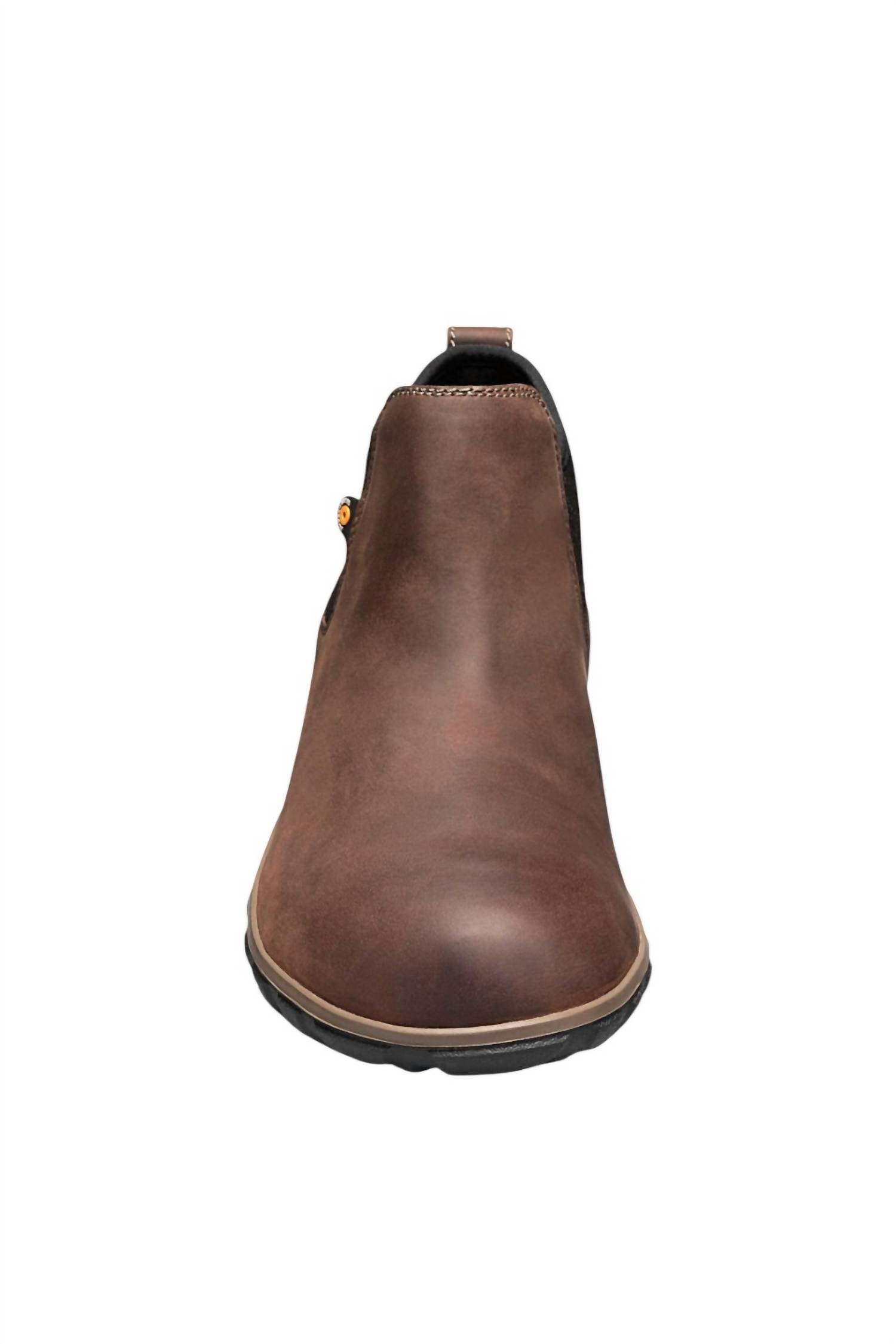 Meet the BOGS Men's Casual Chelsea Boots, engineered for style and sustainability. Crafted from waterproof leather with seam-sealed construction, these boots ensure your feet stay dry and comfortable. Featuring eco-friendly attributes such as recycled materials, gold certified leather, and a REBOUND BLOOM algae-based EVA footbed, they actively help clean polluted water habitats. Additional features include Neo-Tech waterproof insulation, DuraFresh bio-technology to combat odors, and Bogs Max-Wick technology to keep feet sweat-free, making these brown streetwear staples perfect for engagement occasions or Thanksgiving gatherings.