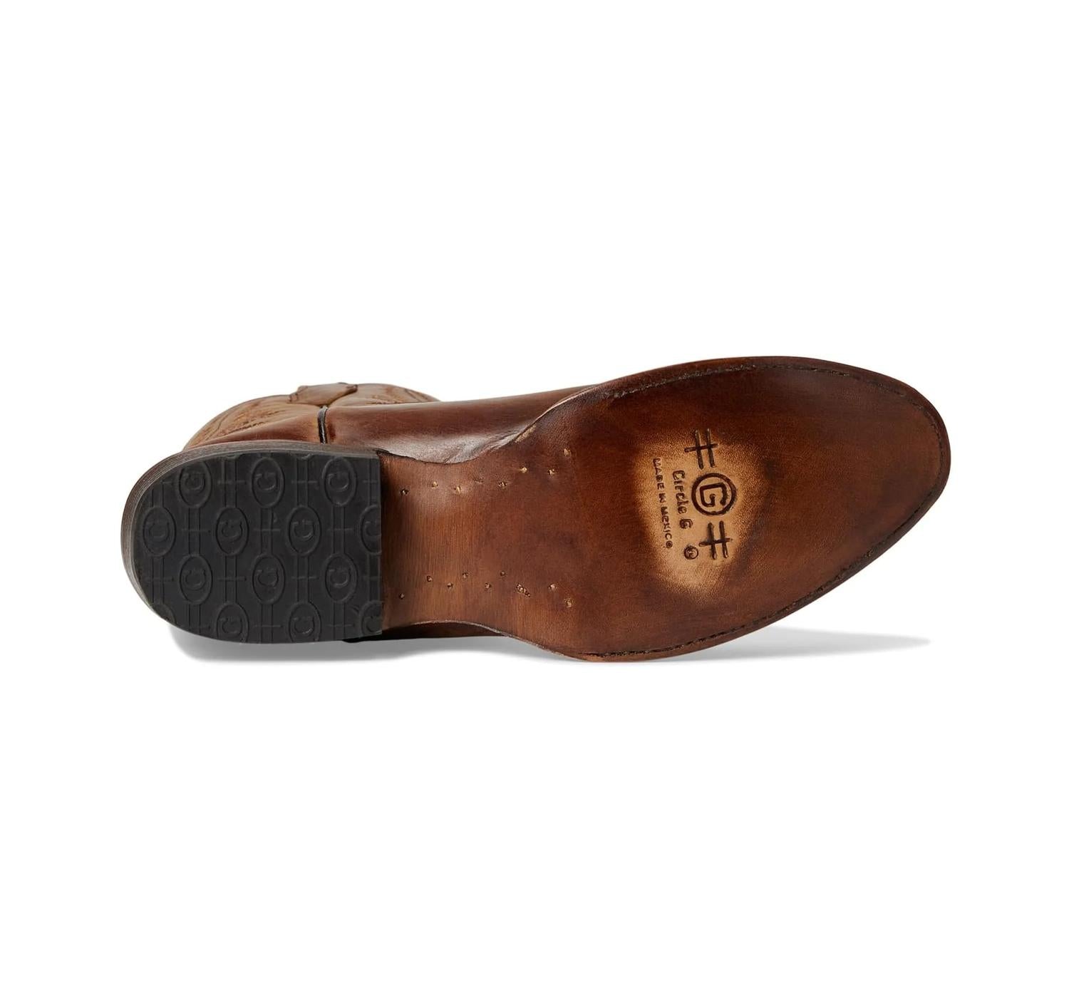 Elevate your fall wardrobe with the Men's Western Corral Boots, crafted from tan leather for a sophisticated appearance. These mid-calf boots boast elegant embroidery and an almond toe shape, merging style with comfort. Designed with a Cuban heel at 1.5 inches, they offer both stability and a trendy look. Featuring side pull loops for easy wear, these boots are completed with a durable leather outsole, made in an imported craftsmanship. Measurements for size 7 include a 15-inch circumference and 13-inch shaft, with a weight of 1 lb 7 oz.