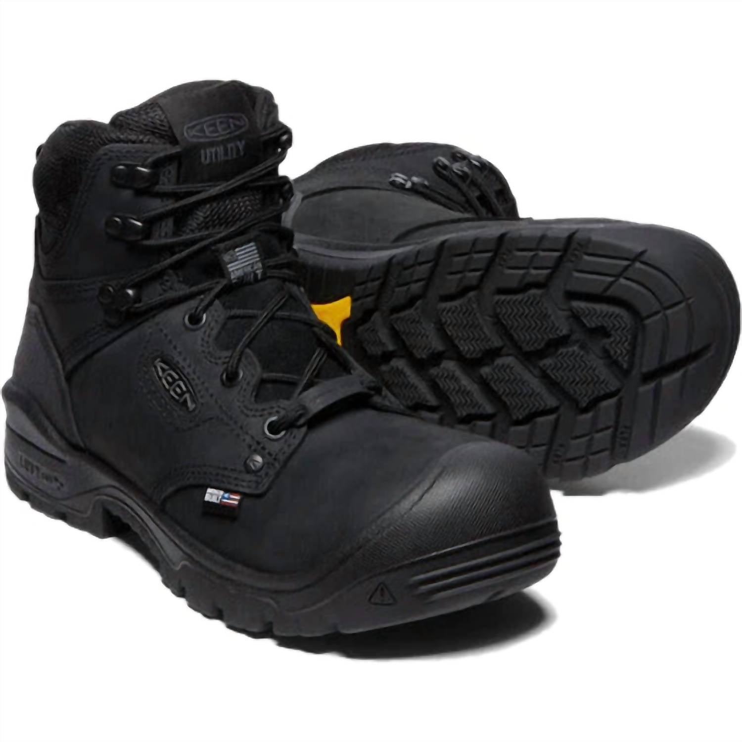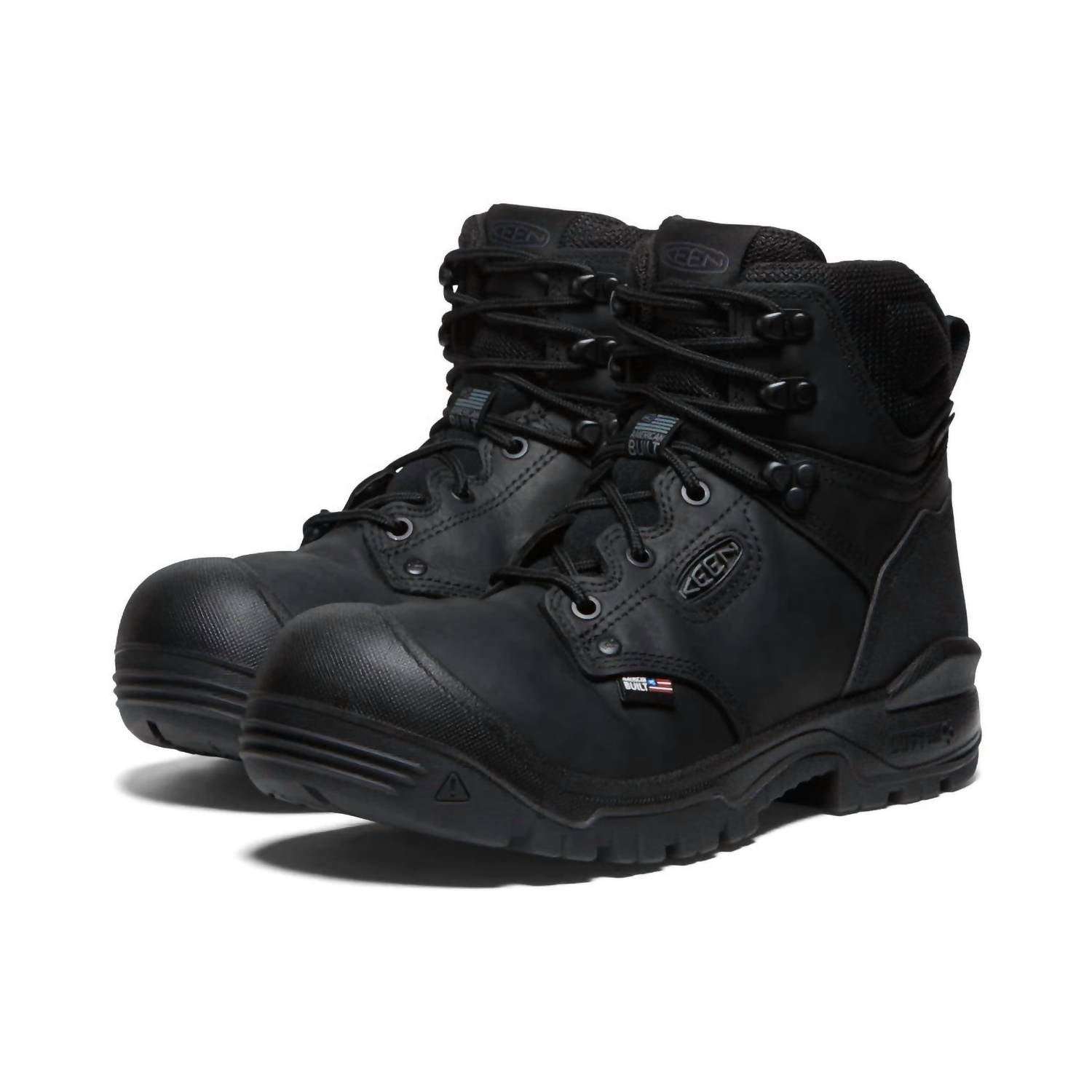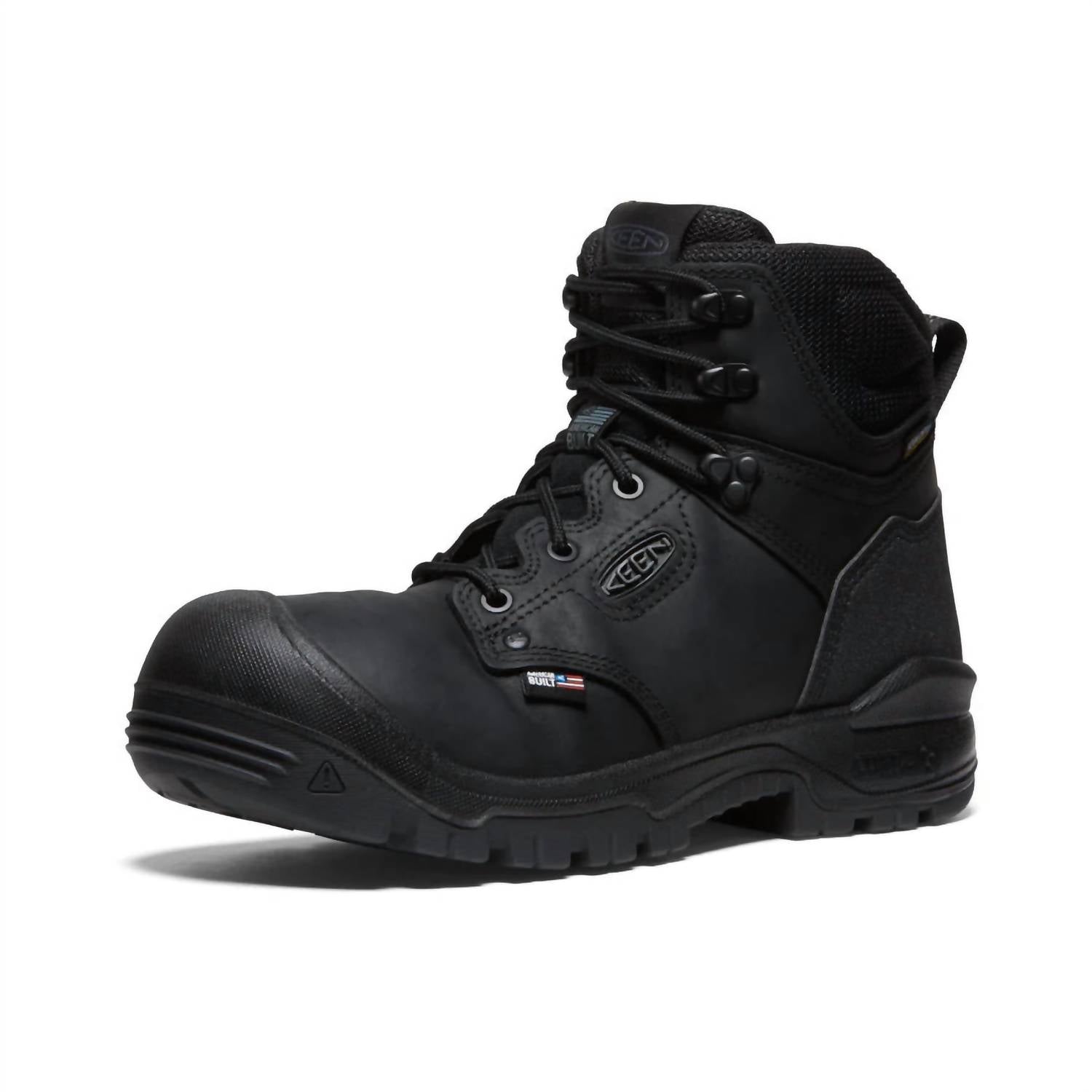Meet the Keen Men’s Independence 6” Waterproof Soft Toe Boot, an essential for tackling tough terrains in style. Crafted from full-grain waterproof leather with environmentally preferred materials, these boots ensure both durability and comfort. Featuring a 90° flat heel and a KEEN.DRY breathable membrane, they provide excellent stability and protection against electrical hazards. Care: Gently brush with a soft bristle brush; use leather cleaner for tough stains. Made for hiking, this minimalist black boot is built in the USA using the finest materials from around the globe.