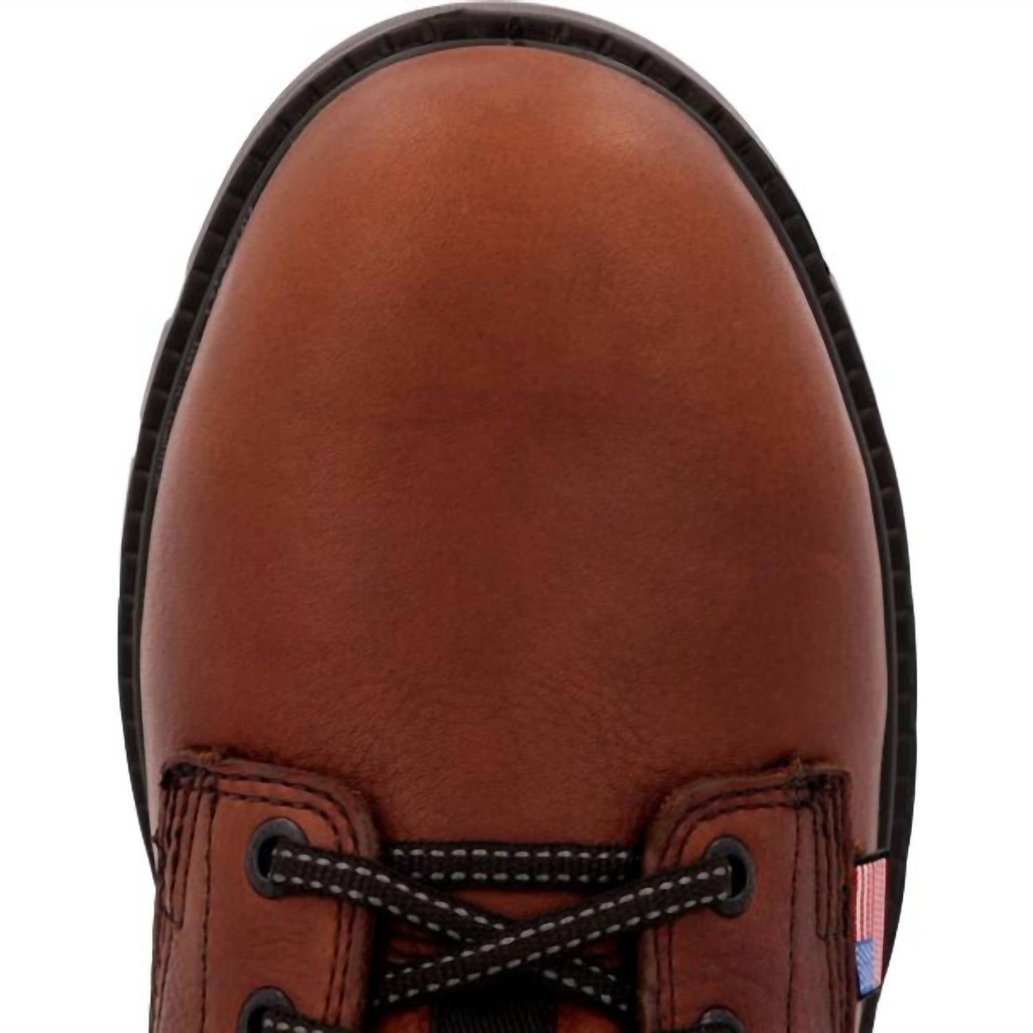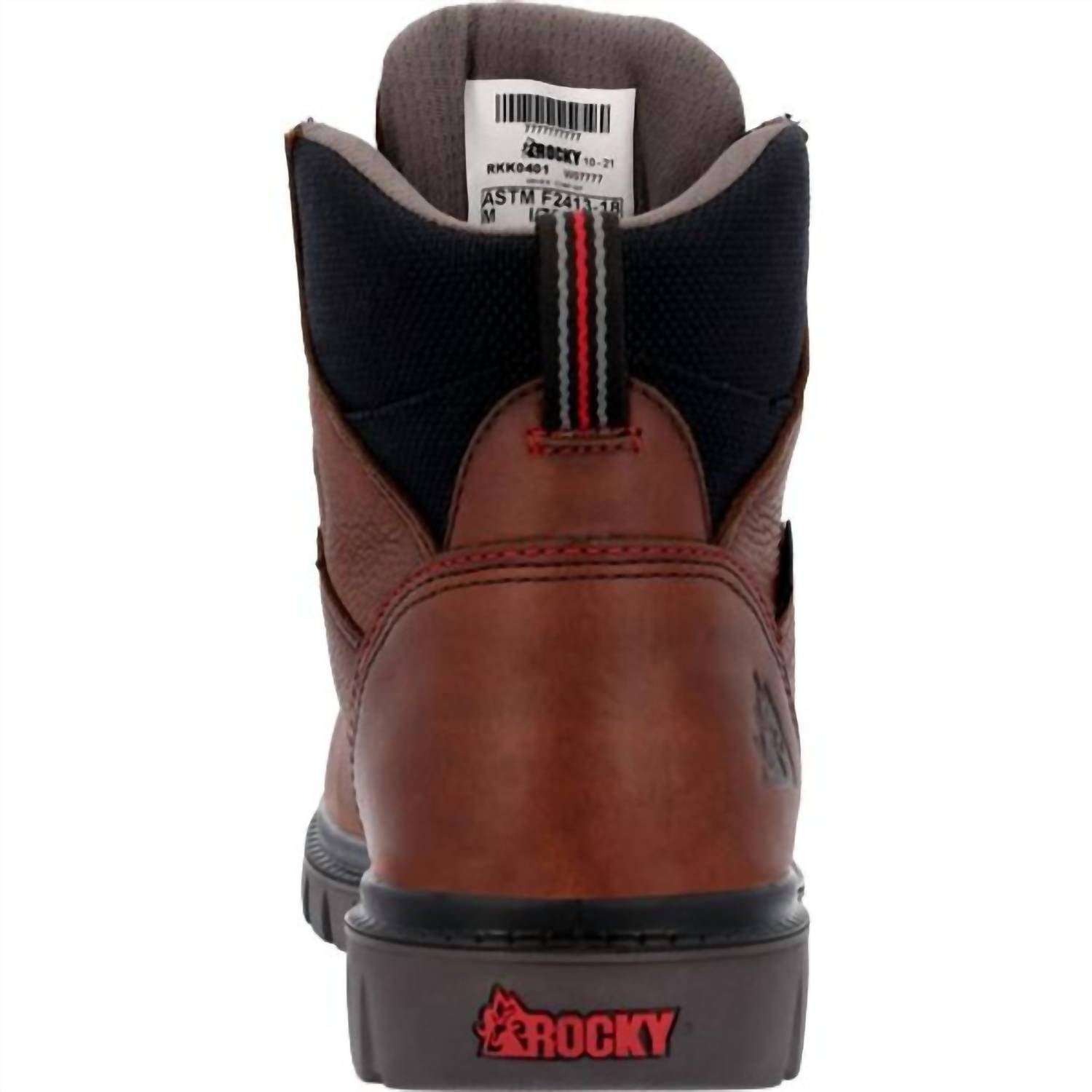 Introducing the Rocky Men's Worksmart Composite Toe Waterproof Boots, designed for durability and comfort. Made from waterproof full-grain leather, these boots feature a round toe and are crafted in the USA with both local and global components. The boots offer a 6-inch shaft height, 1.5-inch heel, and weigh 1.15 lbs per shoe in size 10M. Equipped with a slip and abrasion-resistant rubber outsole, they ensure protection with a composite toe that meets ASTM F2413 standards.
