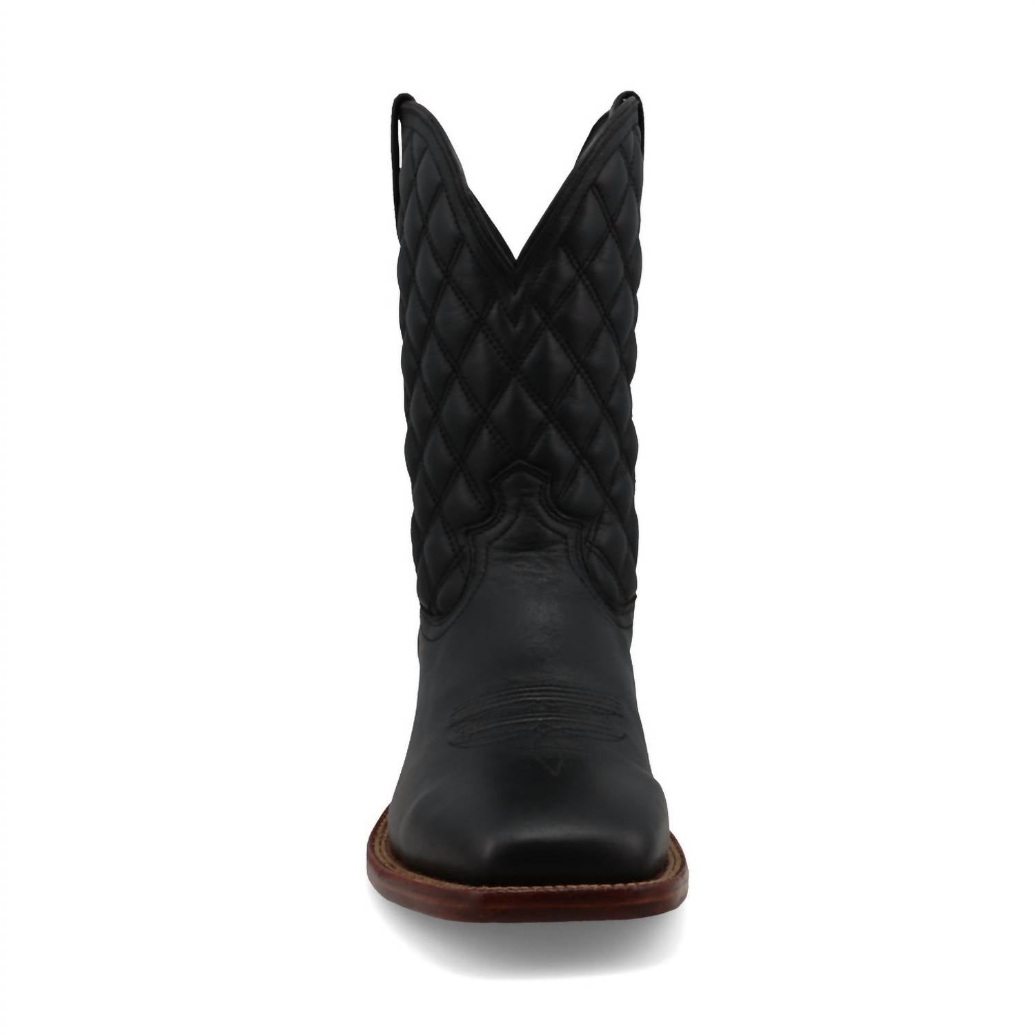 Experience exceptional comfort and style with the Men's Tech X Boot by TWISTED X, designed for the modern cowboy. Crafted from premium leather, these black boots feature an 11" quilted shaft and a sleek flat leather vamp, accented by a block heel standing at 1.5 inches. Equipped with the innovative CellStretch® comfort technology, these boots activate over 100 pressure points in the foot, offering unparalleled comfort. Perfect for the fall season, these round toe boots promise a stylish and comfortable ride in any western adventure.
